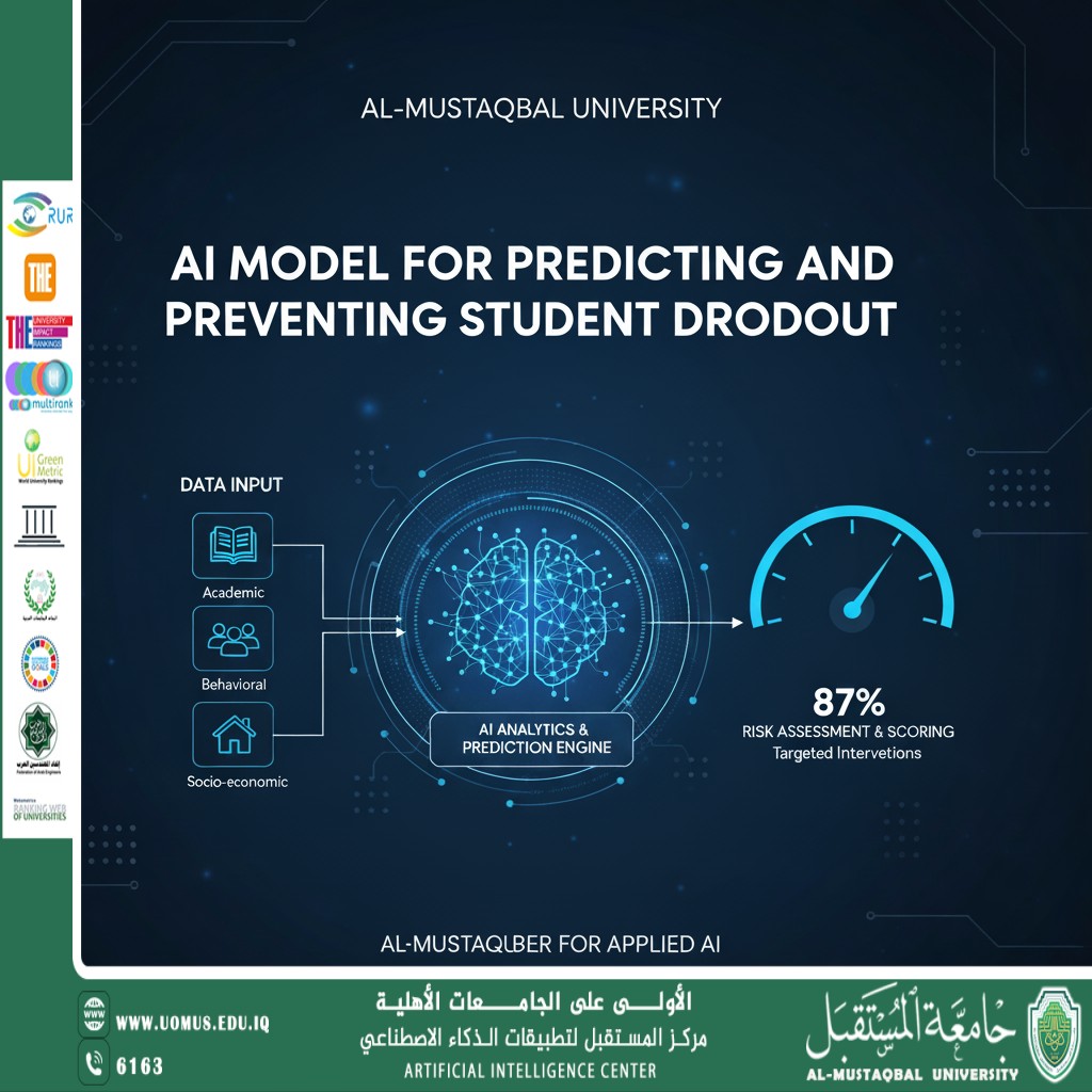 AI Model for Predicting and Preventing Student Dropout at Al-Mustaqbal University Introduction Student dropout represents one of the most critical and pervasive challenges facing higher education institutions worldwide [1]. Its detrimental effects extend beyond individual students, impacting institutional funding, reputation, and the overall quality of educational provision. At Al-Mustaqbal University, a leading private institution in Iraq, understanding the multifaceted underlying factors behind student disengagement and eventual withdrawal is not merely an academic exercise; it is an essential strategic imperative to improving educational outcomes, optimizing resource allocation, and bolstering institutional reputation and sustainability. The rapid advancements and integration of artificial intelligence (AI), particularly sophisticated deep learning and machine learning algorithms, offer a powerful and unprecedented opportunity to move beyond traditional, reactive approaches. By leveraging these cutting-edge technologies, we can develop highly accurate predictive models that are capable of identifying at-risk students much earlier in their academic journey, thereby enabling the implementation of timely and effective interventions [3]. This proactive approach aims to foster a more supportive and responsive educational environment, ultimately enhancing student success and retention. Problem Statement Traditional methods of monitoring student performance and well-being have historically relied heavily on manual assessment, periodic academic record reviews (such as mid-term and final grades), and subjective evaluations by faculty. While these methods provide some insight, they are often inherently reactive rather than proactive, tending to address problems only after students have already begun to disengage, face significant academic difficulties, or have even dropped out entirely [5]. Such belated interventions are frequently less effective and more costly. Moreover, with the continuous growth in class sizes, the increasing diversity of student demographics, and the complexity of modern learning environments, it becomes progressively more challenging for faculty members and administrative staff to provide the personalized, individualized support that each student truly needs, especially at scale. This gap highlights a critical need for an automated, data-driven system that can efficiently process vast amounts of information and provide actionable insights before problems escalate. Objective The primary and overarching objective of this comprehensive case study is to meticulously design and propose an AI-powered predictive model specifically tailored for Al-Mustaqbal University. This model will be capable of: Analyzing diverse and multi-modal data sources: This includes a wide array of information such as detailed academic records (grades, assignment submissions, GPA trends), comprehensive behavioral and engagement data (attendance patterns, activity logs within Learning Management Systems (LMS), participation in online forums and discussions, communication frequency with instructors), and relevant socio-economic indicators (financial aid status, family support structures, geographical location relative to campus). Identifying students at high risk of dropping out: The model will not only flag students as "at-risk" but will also aim to quantify the level of risk and potentially pinpoint the contributing factors, providing a nuanced understanding of their situation. This early identification is crucial for timely action. Recommending proactive and personalized interventions: Beyond mere prediction, a key goal is to suggest specific, actionable, and tailored interventions. These might include academic counseling, psychological support, financial aid assistance, peer mentoring programs, or targeted faculty outreach, all aimed at improving student retention rates and overall academic success. Methodology To achieve the stated objectives, a robust and scientifically sound methodology will be employed, encompassing several critical stages: Data Collection The efficacy of any AI model is directly dependent on the quality and comprehensiveness of the data it processes. Therefore, a meticulous data collection strategy is paramount: Student Demographic Information: This includes age, gender, geographic origin, program of study, and admission type, which can provide foundational insights into student populations. Academic Performance Records: Detailed historical and ongoing data, such as scores on quizzes, exams, assignments, overall Grade Point Average (GPA) for each semester, and trends in academic performance over time. Behavioral and Engagement Data: This category is crucial and will encompass various facets: Attendance: Both physical classroom attendance and engagement in online synchronous sessions. LMS Activity: Log data from the university's Learning Management System (e.g., Moodle, Blackboard), tracking frequency of logins, time spent on course materials, downloaded resources, forum participation, and submission timestamps for assignments. Participation: Metrics related to classroom participation (where available), engagement in university-wide events, and interactions with student support services. Socio-economic Indicators: Data that might indirectly influence student persistence, such as financial aid status, scholarship receipt, reported commuting distances, and anonymized aggregated data regarding family background, all collected with strict adherence to privacy protocols. Psychological Well-being Data (Optional and Highly Sensitive): Subject to ethical approval and student consent, this could involve anonymized data from university counseling services, participation in stress management workshops, or even self-reported well-being surveys. This data stream, if integrated carefully, can offer invaluable insights into non-academic stressors affecting students. Model Development The core o