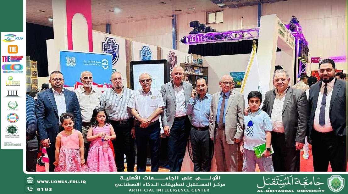 A delegation from Al-Mustaqbal University visited the Baghdad International Book Fair on September 16, 2025, where the university participated as a Gold Sponsor. During their tour, the delegation visited the university’s booth, which attracted a large number of visitors interested in exploring the university’s colleges, departments, and academic programs, particularly postgraduate programs in medical and engineering fields. The booth also showcased publications and works by the university’s faculty across various scientific and humanitarian disciplines, as well as introducing the modern laboratories and advanced infrastructure that distinguish the university. This participation reflects the university’s ongoing efforts to enhance its academic and cultural presence and to engage directly with students, researchers, and those interested in scientific and cultural affairs. Al-Mustaqbal University is the leading private university in Iraq