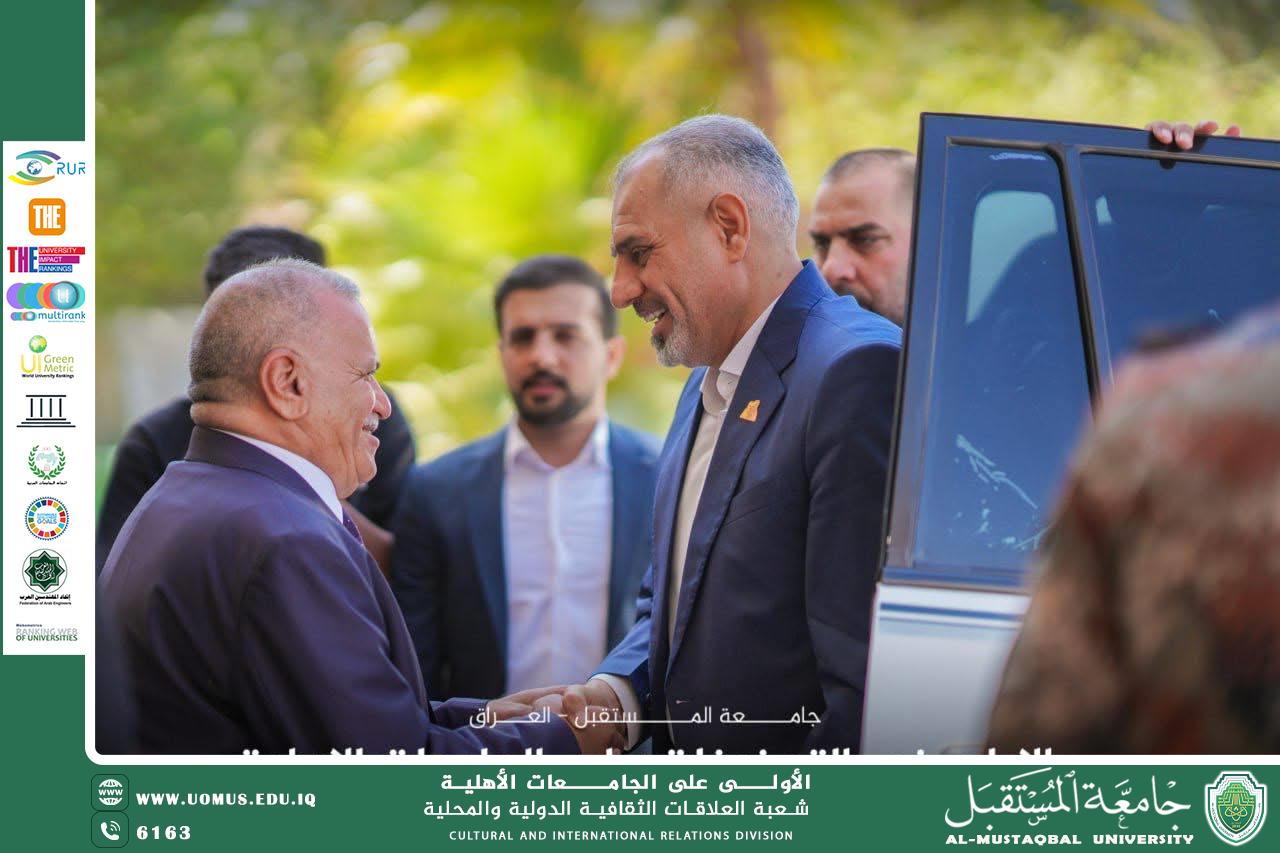 Under the patronage and in the presence of the Governor of Babylon, Mr. Adnan Faihan Al-Dulaimi, and in line with its vision to empower youth and adopt pioneering initiatives, Al-Mustaqbal University launched the preparatory activities for the Al-Mustaqbal Ambassadors for Sustainability Camp, scheduled to be held in early October at the Babylon Tourist Resort. The event was attended by the Governor of Babylon, Mr. Adnan Faihan Al-Dulaimi, the President of Al-Mustaqbal University, Prof. Dr. Hassan Shaker Majdi, alongside vice presidents, deans, department heads, as well as a large number of faculty members, staff, and students from the Al-Mustaqbal Ambassadors for Sustainability program. The activities began with a presentation delivered by Prof. Dr. Mudhaffar Sadiq Al-Zuhairy, Director of Scientific and Academic Supervision, outlining the camp’s objectives, strategic goals, and ongoing preparations. He also announced the launch of the AI Hackathon for Sustainability, which will provide students with a creative platform to showcase their ideas and apply modern technologies to serve the Sustainable Development Goals. The presentation was followed by an interactive panel discussion featuring the Governor of Babylon, Mr. Adnan Faihan Al-Dulaimi, the President of Al-Mustaqbal University, Prof. Dr. Hassan Shaker Majdi, and the Dean of the College of Law, Prof. Dr. Ammar Al-Husseini. Opening the session, the University President welcomed the attendees, praised the Governor’s consistent support and active participation in scientific and cultural events organized by the University, and stressed that the camp will provide a dynamic environment for youth to exchange ideas, network with partners from different sectors, and present their innovative projects. For his part, the Governor of Babylon expressed his gratitude and appreciation to the University’s leadership for launching such unique initiatives—among the first of their kind at the level of Iraqi universities. He emphasized that the Al-Mustaqbal Ambassadors for Sustainability Camp will play a vital role in strengthening national identity and civic belonging, affirming the continued support of the local government for Al-Mustaqbal University’s projects, which have established it as the leading scientific and cultural hub of the province. The session concluded with the Governor presenting his vision on several related issues, followed by discussions and contributions from faculty and students. The meeting ended with a recommendation to complete all necessary preparations to ensure the success of the camp, showcasing Al-Mustaqbal University’s pioneering role and distinguished position both locally and internationally.