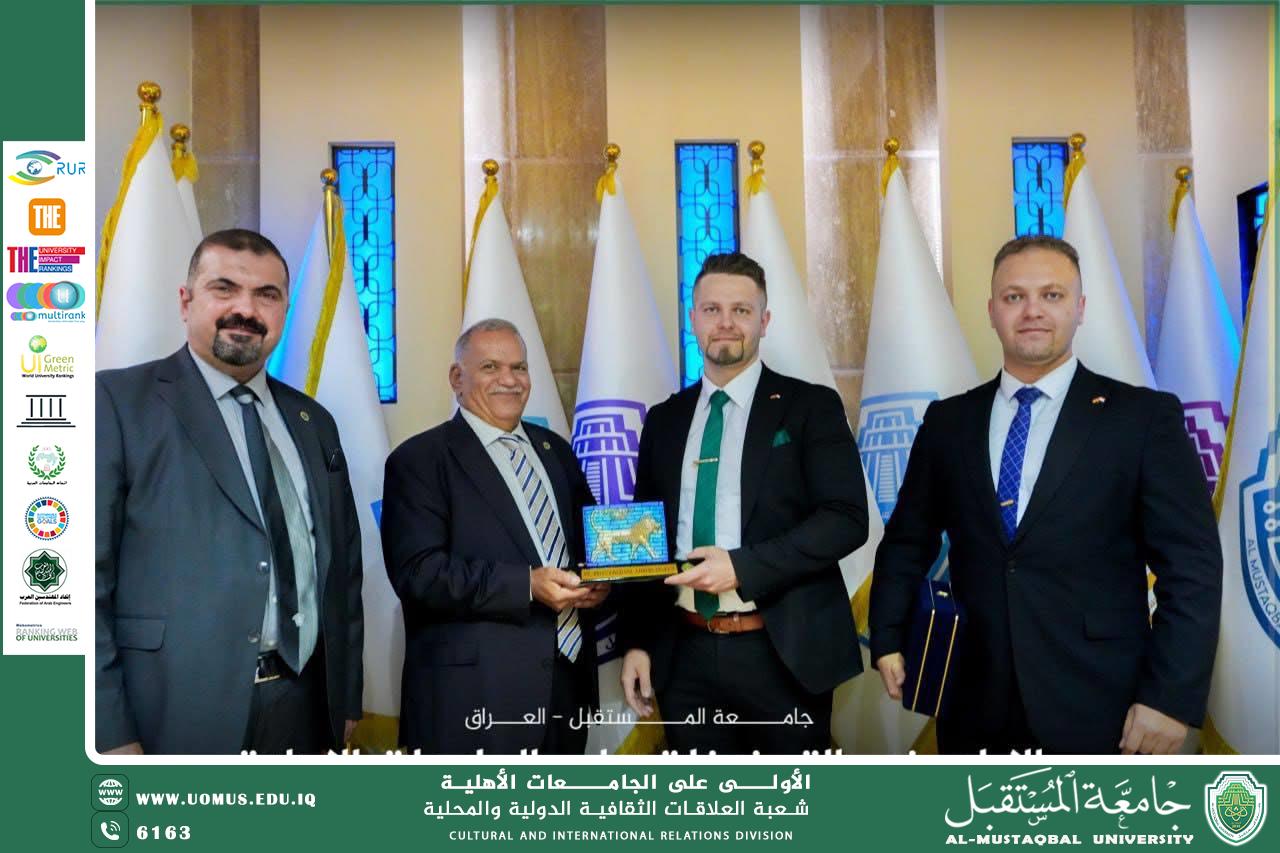 The International and Local Cultural Relations Division Al-Mustaqbal University aims to: 1. Openness to Iraqi, Arab and international universities and creating a kind of scientific and cultural communication with them. 2. Trying to send the largest possible number of master s and phd scholarships, and fellowship students scholarships, fellowships to international universities, especially those that enjoy a privileged position within the international rankings, for the purpose of benefiting from the advanced capabilities in those universities and graduating an efficient cadre that contributes to the development of the university and raising its scientific level. 3. Encouraging teaching staff to paritsipet in international scientific conferences for research and working papers and benefiting from those participations to develop constructive relations with their counterparts in various countries. 4. Benefiting from workshops and courses held in various Iraqi,Arab and foreign universities and in various disciplines,especially scientific ones, to raise the efficiency of the university teaching, techincal,and managerial staf 5. Concluding memorandums of understanding with reputable Iraqi Arab and international universities to facilitate access to study and research opportunities and the transfer of modern technology in various fields. 6. Facilitating admission for students with scholarships fellowship in reputable universities by investing in memorandums of understanding and scientific cooperation concluded between our university and those universities. 7. Encouraging the teaching staff holding the title of assistant professor and professor to sabbatical for a year in reputable international universities and facilitating their admission from those universities. 8. Encouraging PhD holders to continue studying specialization to develop their scientific and research potential. 9. Hosting visiting professors from abroad. 10. Participation in awards, competitions and conferences outside Iraq. 11. Authenticity of issuance and evaluation of certificates. 12. Active participation in global and local meetings and seminars, exchange of books and publications, and access to global technology in the fields of information technology.