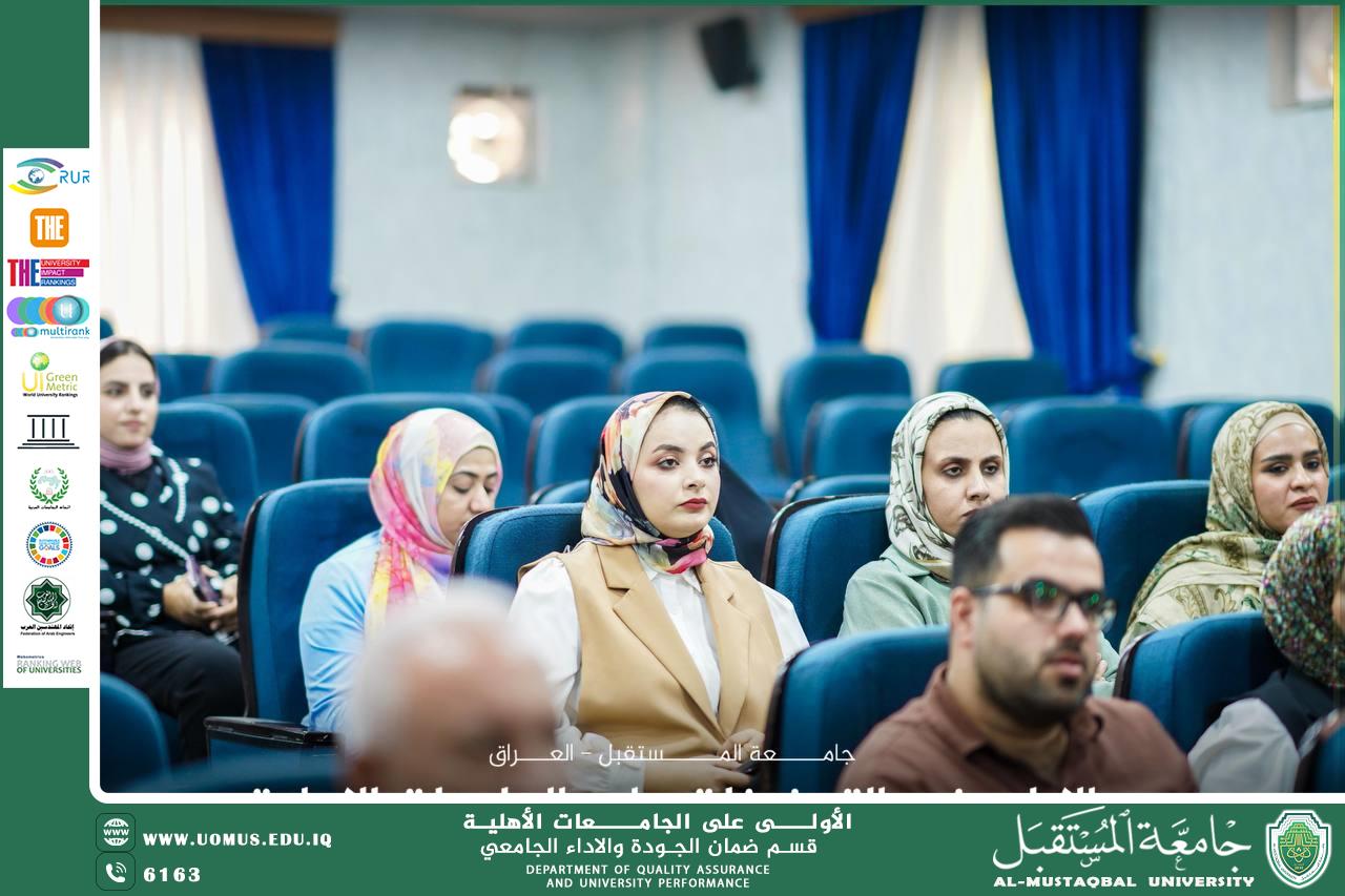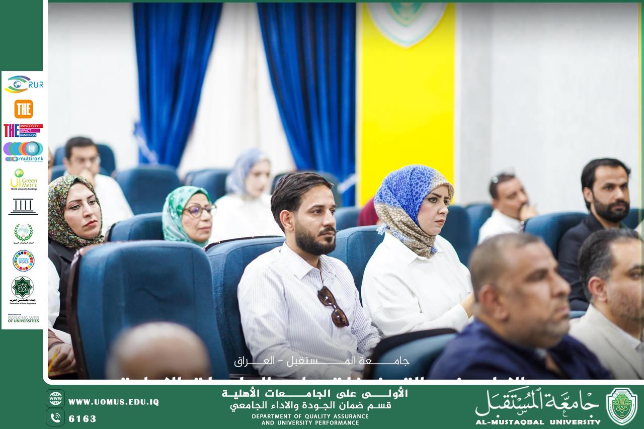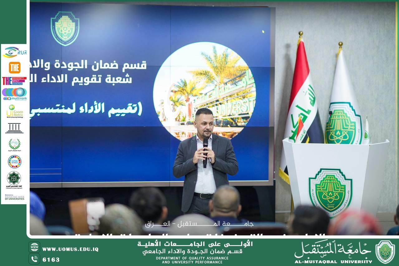 Under the patronage of the President of Al-Mustaqbal University, the Quality Assurance and Academic Performance Department organized a workshop entitled “Mechanism for Evaluating the Performance of University Staff for the Academic Year 2024–2025”, as part of the university’s efforts to enhance quality practices and meet accreditation standards.