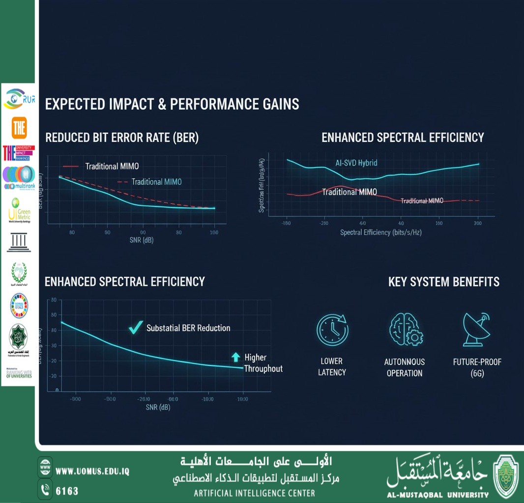 Historically, Singular Value Decomposition (SVD) has formed the mathematical backbone of MIMO systems. It provides an optimal method for decomposing the complex communication channel into a set of independent sub-channels, theoretically eliminating interference between them [3]. However, this classical approach faces challenges in rapidly changing real-world environments and requires precise, instantaneous Channel State Information (CSI), which is difficult to achieve. This is where Artificial Intelligence (AI) emerges as an enabling element, capable of adding a layer of intelligence and adaptability, allowing systems to learn, understand the surrounding environment, and respond to its changes proactively and effectively [4][5].