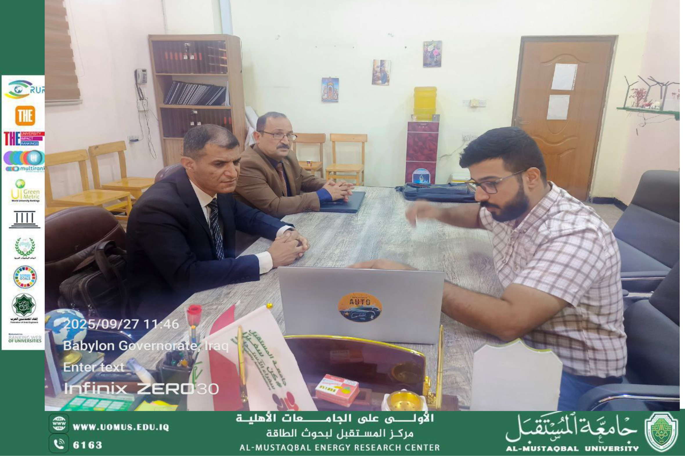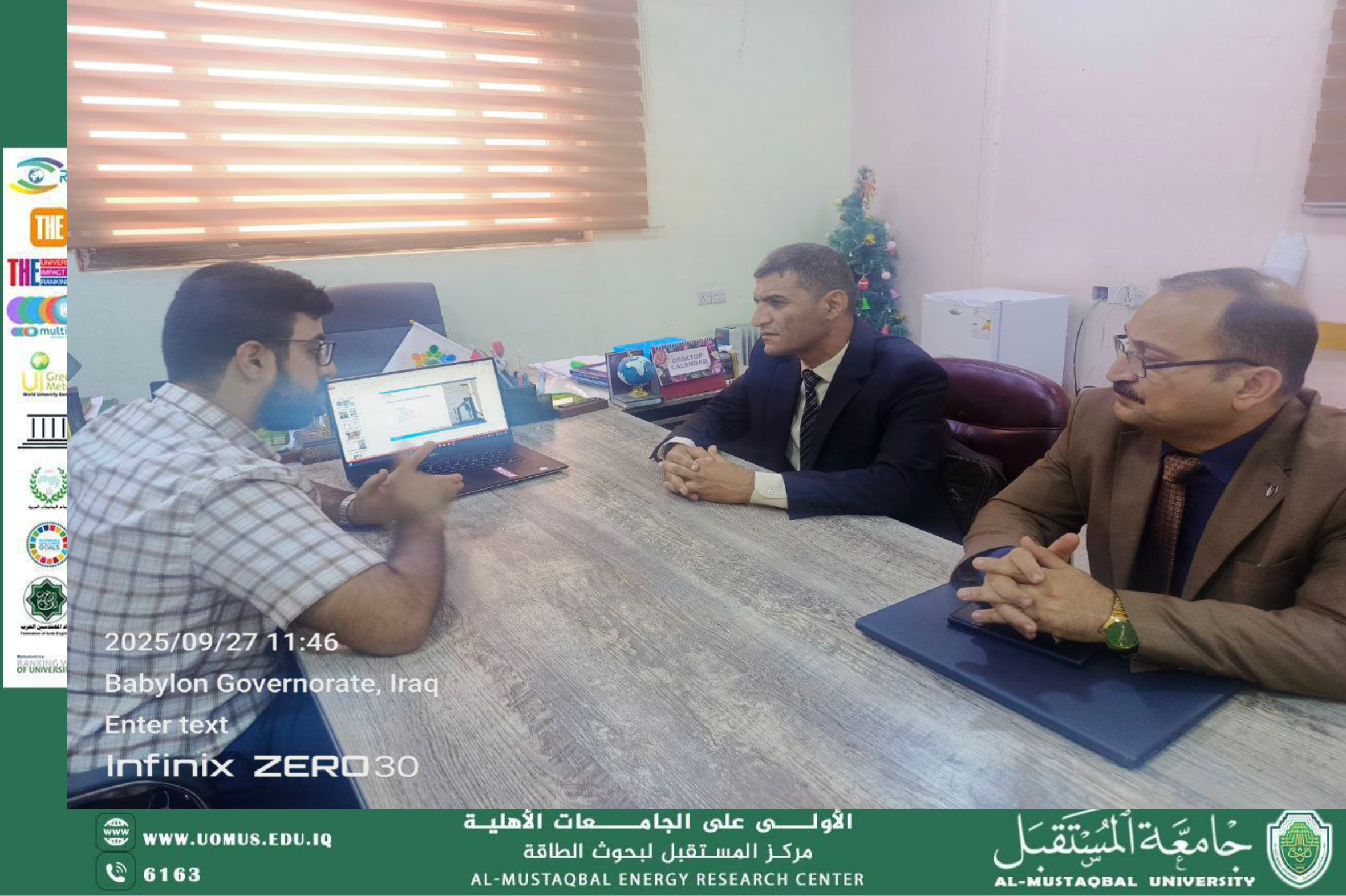 As part of its continuous efforts to attract distinguished academic competencies, Al-Mustaqbal Center for Energy Research conducted a scientific interview with Mr. Hameed Baqir, one of the applicants seeking an academic position at Al-Mustaqbal University.