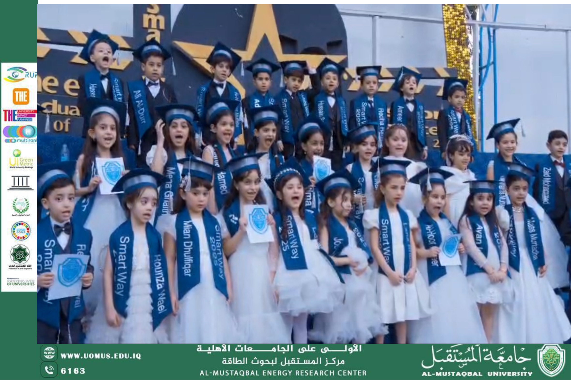 The Smart Way English Kindergarten hosted a joyful and knowledge-rich graduation ceremony for its students, marked by an engaging and interactive atmosphere. The event was distinguished by the valued participation of the Energy Research Center at Al-Mustaqbal University and the College of Engineering Technologies, whose contributions added depth and inspiration to the celebration.