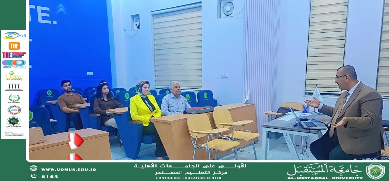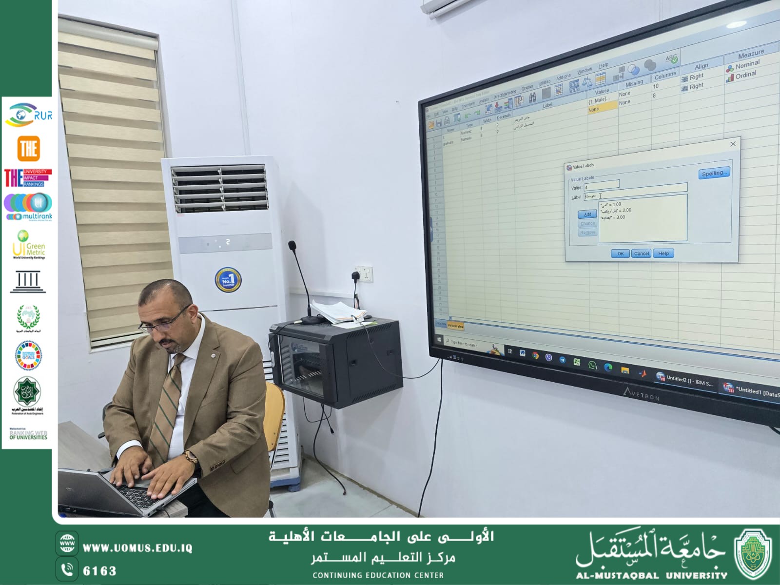 The Center for Continuing Education at Al-Mustaqbal University has officially launched the SPSS Statistical Analysis Training Course, held under the generous patronage of the University President, Prof. Dr. Hassan Shaker Majdi, and organized under the direct supervision of Asst. Prof. Dr. Rida Abdul Aati Al-Feshawi, Director of the Center for Continuing Education.