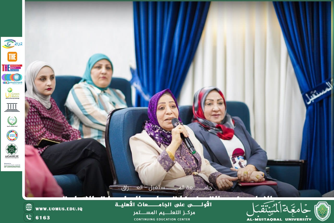 The session was coordinated and moderated by Asst. Prof. Dr. Rida Abdul Aati Al-Feshawi, Director of the Center for Continuing Education, and was delivered by Prof. Dr. Ammar Abbas Al-Husseini, Dean of the College of Law at Al-Mustaqbal University. The workshop was attended by a number of faculty members and administrative staff, and witnessed notable interaction and fruitful discussions.