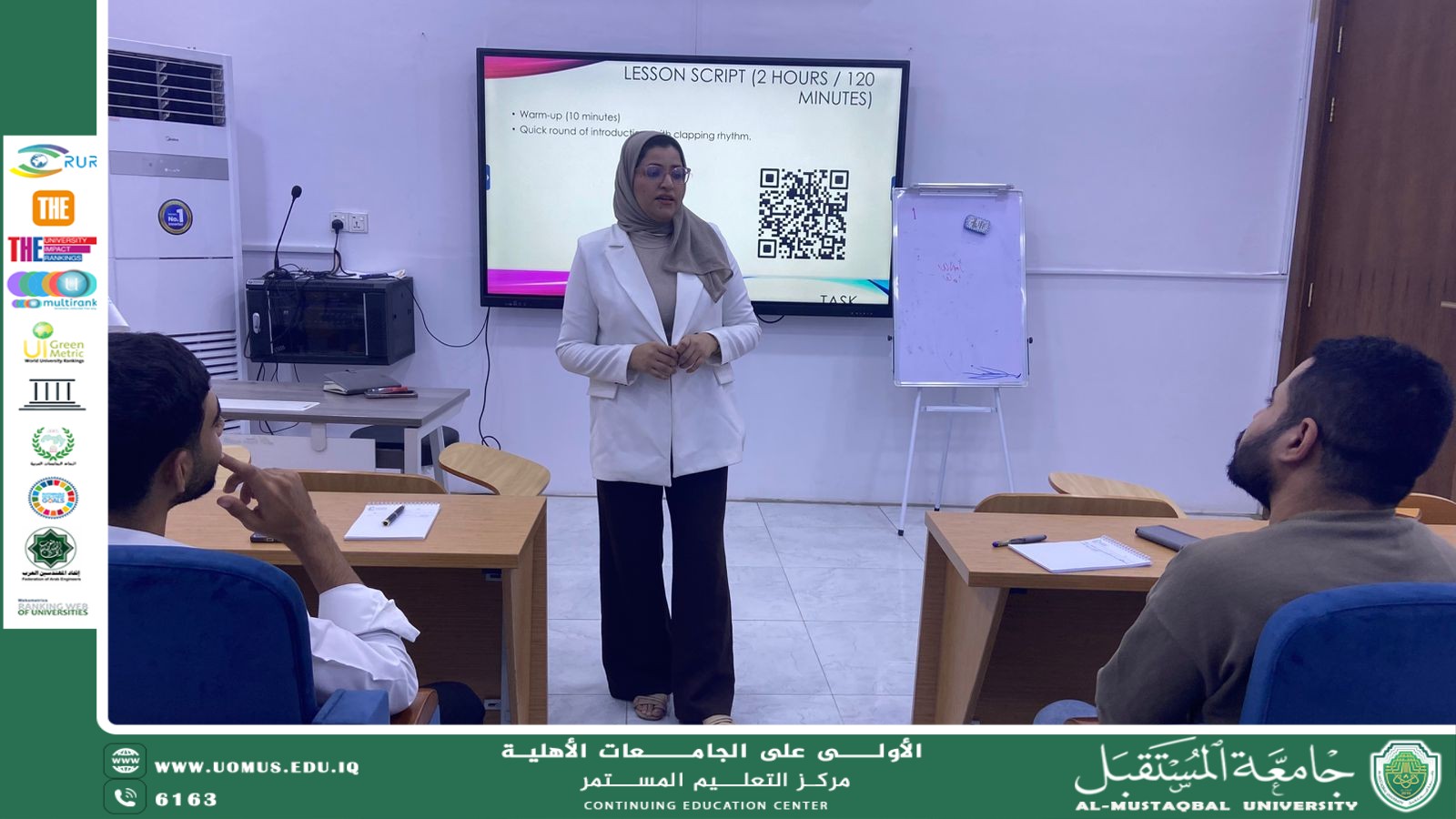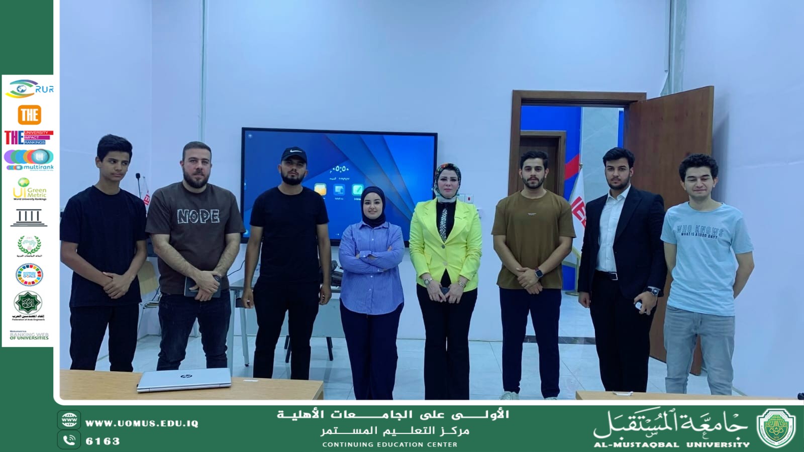 The training was delivered by Ammar Abdul Kareem Mubarak, a professional programmer and founder of Webe Software Solutions, and Asst. Lecturer Yasmeen Mohammed Fadhel, a certified trainer at the Center for Continuing Education – Al-Mustaqbal University. Their sessions combined theoretical instruction with applied exercises.