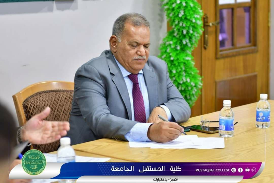 إثناء ترأسه إجتماعا لكادر قسم هندسة الطب الحياتي: السيد عميد كلية المستقبل الجامعة يوجه بضرورة إنجاح التعليم الإلكتروني