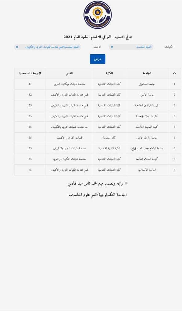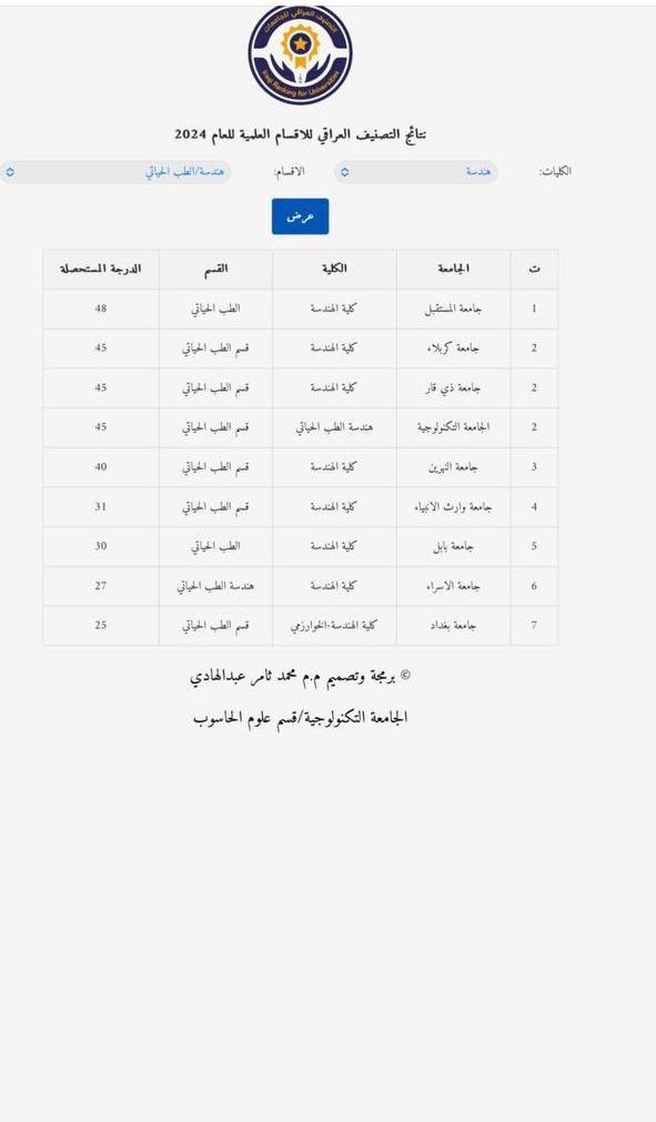 🔶الأقسام الأولى على مستوى العراق (حكومي وأهلي):