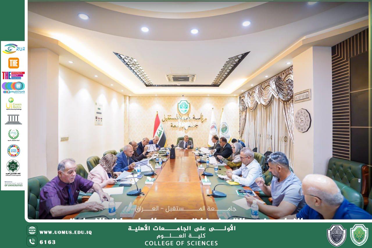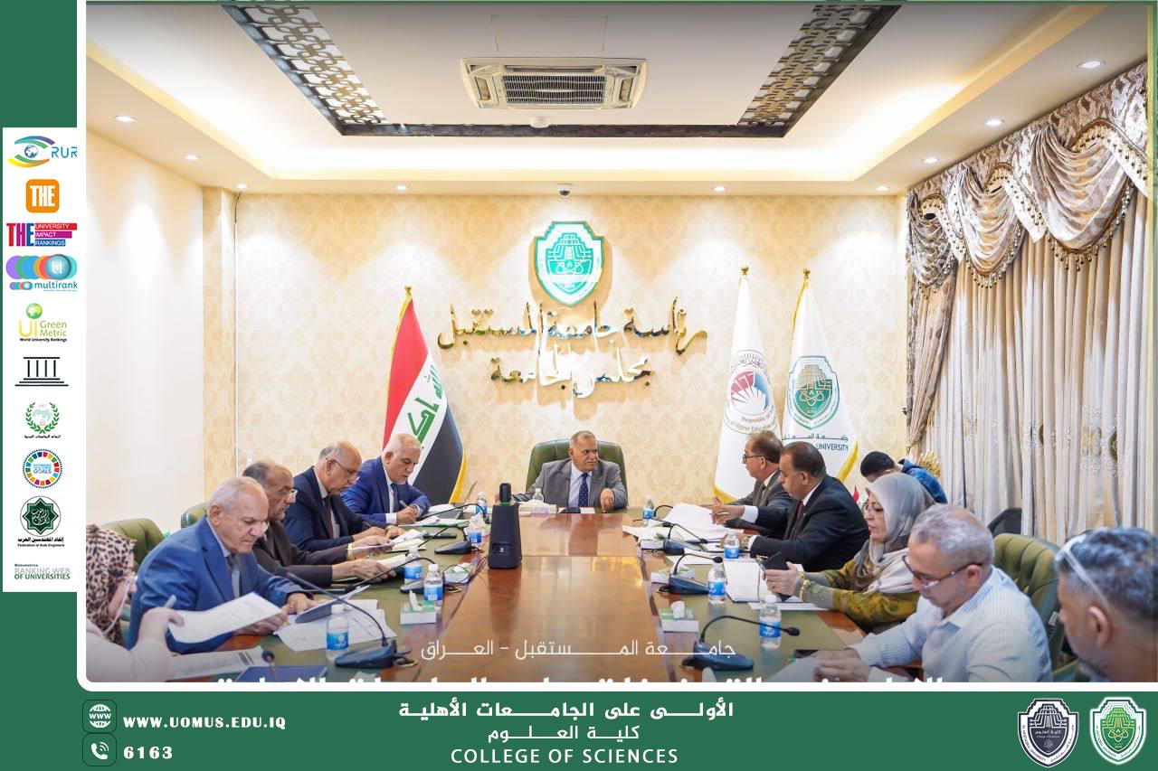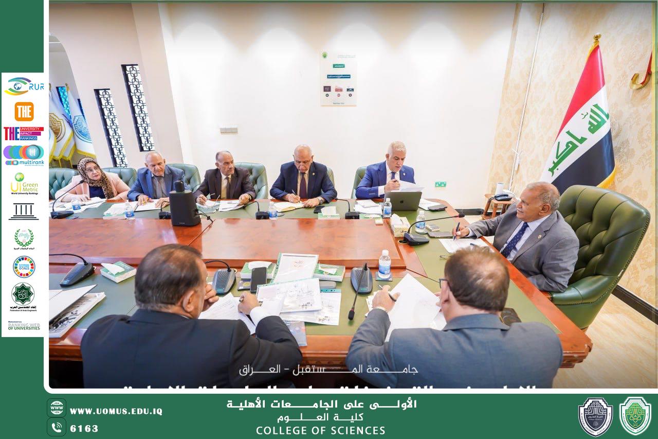 ترأس الاجتماع السيد رئيس الجامعة الأستاذ الدكتور حسن شاكر مجدي، بحضور السيد المساعد الإداري الأستاذ الدكتور منذر فاضل، ومدير الإشراف العلمي والأكاديمي الأستاذ مظفر صادق الزهيري، وعدد من الأساتذة والمسؤولين المعنيين.