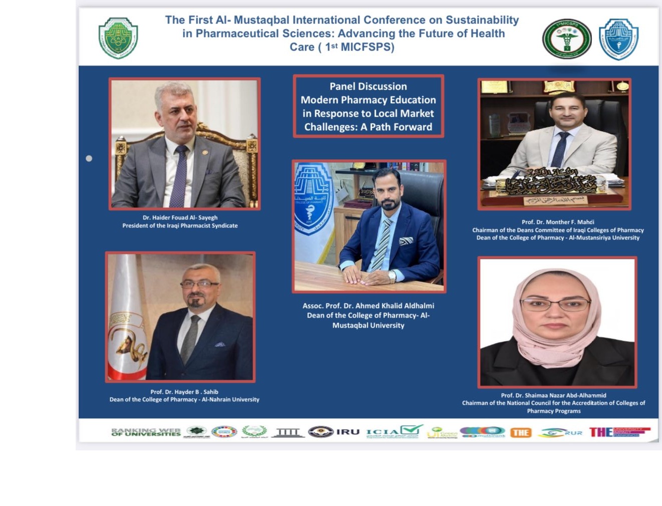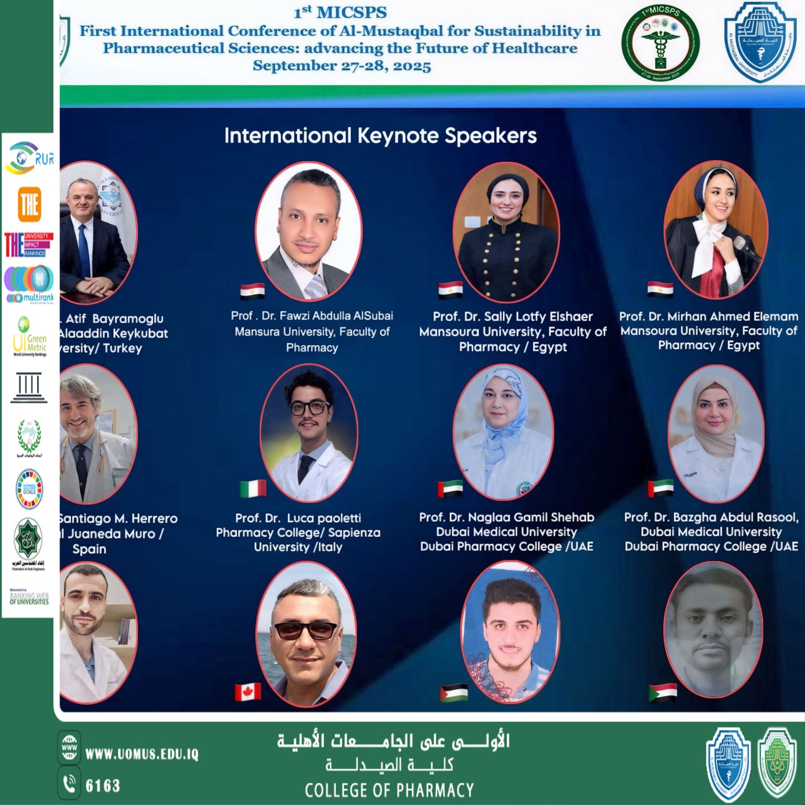 و بمشاركة وحضور دولية و محلية لنخبة من القادة الاكاديميين و الباحثين و المهنيين لتبادل الافكار الرائدة و الابحاث المبتكرة في مجال العلوم الصيدلانية المستدامة ..