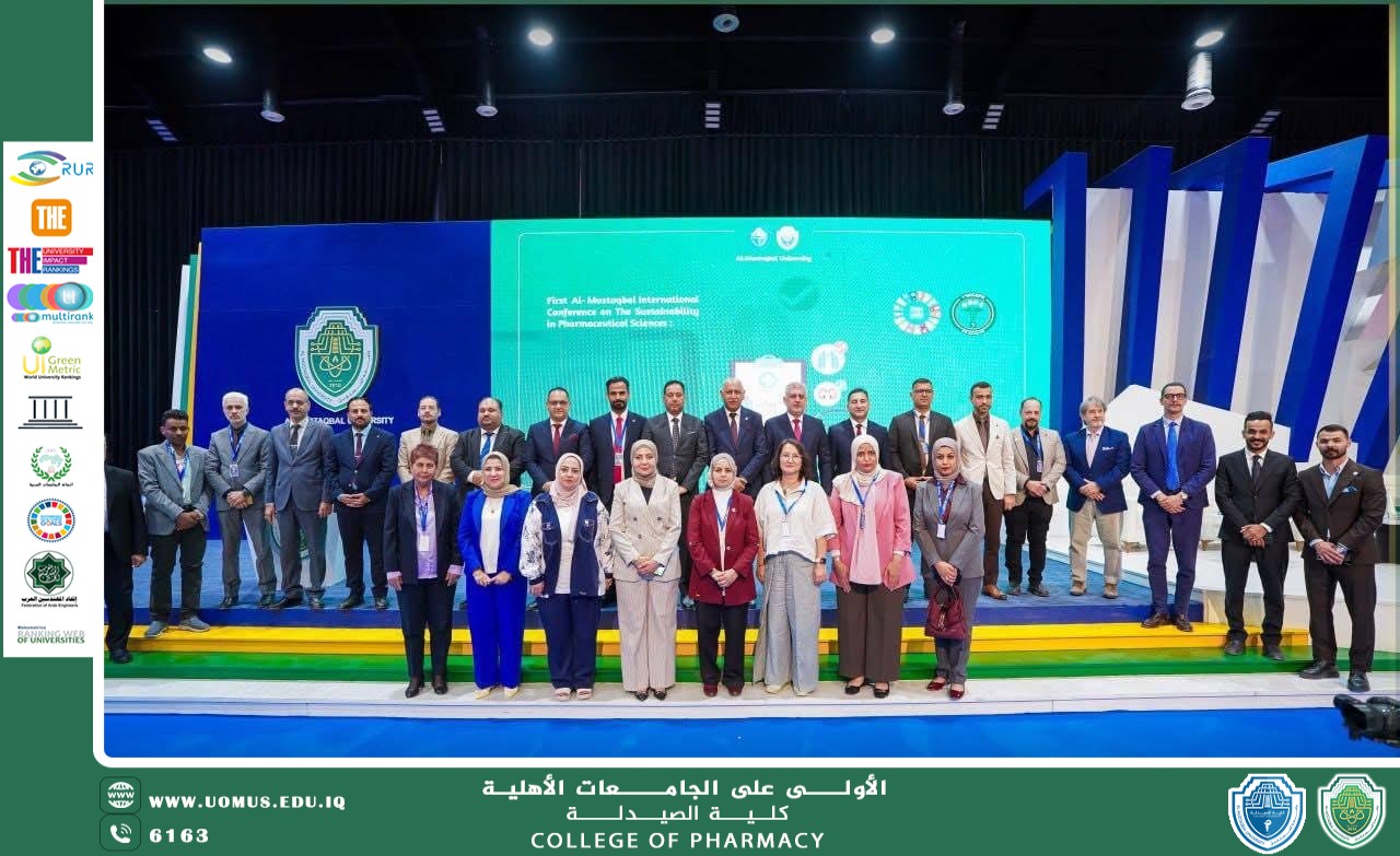نظّمت **كلية الصيدلة – جامعة المستقبل** صباح اليوم فعاليات **مؤتمر المستقبل الدولي الأول للاستدامة في العلوم الصيدلانية**، بمشاركة واسعة من نخبة الأكاديميين والباحثين والعاملين في القطاع الصيدلاني من داخل العراق وخارجه.