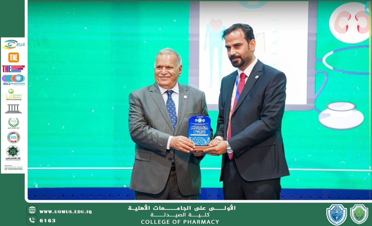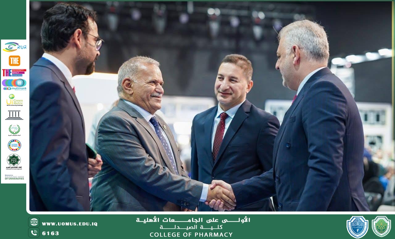 برعاية معالي وزير التعليم العالي والبحث العلمي الأستاذ الدكتور نعيم العبودي وبإشراف السيد رئيس جامعة المستقبل الأستاذ الدكتور **حسن شاكر مجدي**، وبأشراف مباشر من عميد كلية الصيدلة أ.م.د أحمد خالد الظالمي المحترم