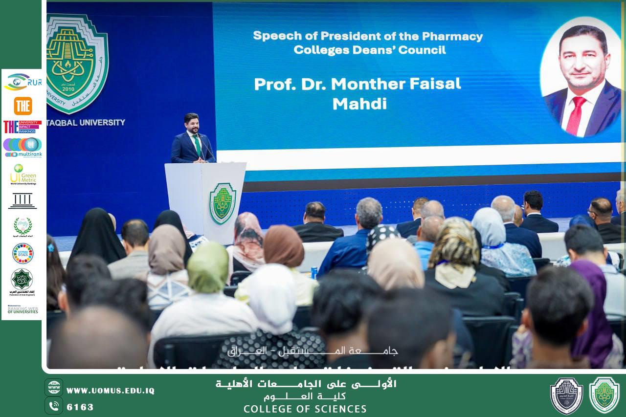 واستُهلت أعمال المؤتمر بكلمة افتتاحية لرئاسة الجامعة ألقاها الأستاذ الدكتور مظفر صادق الزهيري، مدير الإشراف العلمي والأكاديمي، الذي أكد في مستهلها أهمية انعقاد المؤتمر بوصفه منصة علمية رصينة لتبادل الرؤى والأفكار وقصص النجاح، لاسيما مع حضور شخصيات بارزة من الأكاديميين والباحثين والعاملين في قطاع العمل الصيدلاني. كما أشار إلى حرص رئاسة الجامعة على دعم البحث العلمي، مبينًا أن نسبة كبيرة من بحوث الجامعة قد تركزت على تحقيق الهدف الثالث من أهداف التنمية المستدامة (الصحة الجيدة والرفاه). ولفت في كلمته إلى حصول الجامعة على الاعتماد المؤسسي، بالإضافة إلى نيل كلية الصيدلة الاعتماد البرامجي المشروط بعد مصادقة وزارة التعليم العالي والبحث العلمي والذي يشكل خطوة مهمة في طريق الحصول على الاعتماد الأكاديمي الدولي .