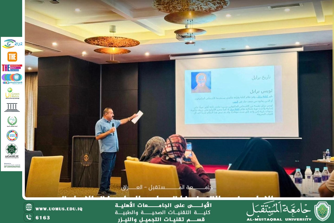 في إطار التزامها بالمسؤولية المجتمعية وترسيخ مبادئ التعليم الشامل وتكافؤ الفرص، شاركت جامعة المستقبل / قسم النشاطات الطلابية، ممثلةً بالسيد سجاد رزاق الهلالي، في الورشة التدريبية الدولية التي نظمتها منظمة الأمم المتحدة للطفولة (اليونيسف UNICEF) بالتنسيق مع وزارة العمل والشؤون الاجتماعية – هيئة ذوي الإعاقة والاحتياجات الخاصة / قسم الإدماج والسياسات الاجتماعية، والتي أُقيمت في محافظة كربلاء المقدسة.