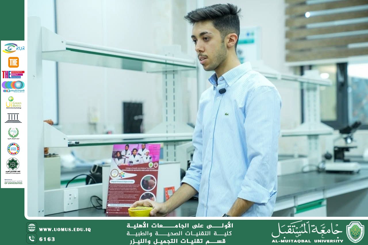 برعاية رئاسة جامعة المستقبل، وبإشراف عمادة كلية التقنيات الصحية والطبية، نظّم قسم تقنيات التجميل والليزر يوم السبت الموافق 20 / 9 / 2025 فعالية هاكاثون الابتكار الصحي الأول تحت شعار: "الابتكار في التقنيات الصحية والطبية طريق نحو صحة آمنة"، وذلك ضمن فعاليات معسكر سفراء المستقبل للاستدامة.