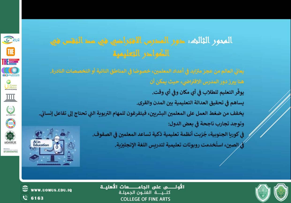 المحور الثالث: دور المدرس الافتراضي في سد النقص في الكوادر التعليمية.