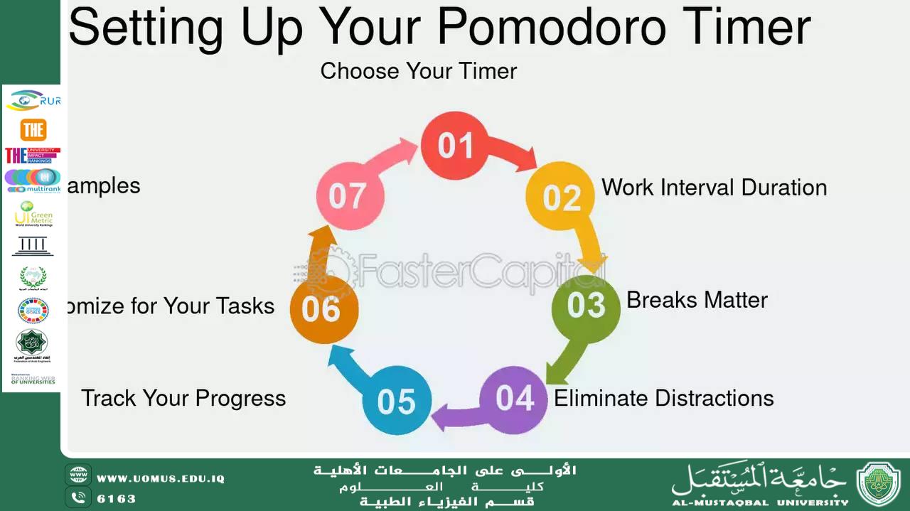 • اضبط الفترات وفقًا لاحتياجاتك: إذا كنت بحاجة إلى فترات أطول من 25 دقيقة، يمكنك تعديلها وفقًا لنوع المهمة وتركيزك الشخصي.