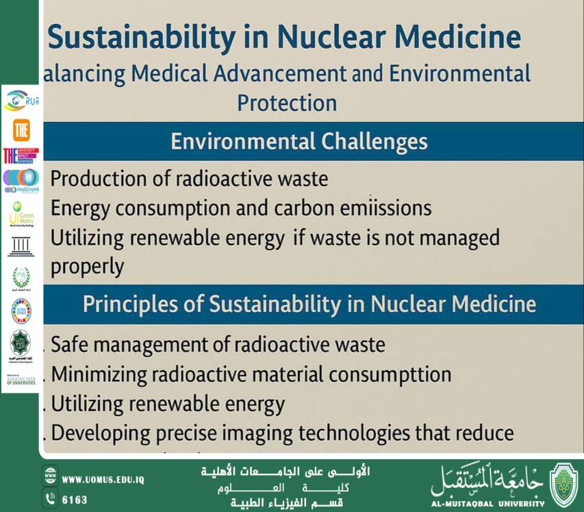 يُعد الطب النووي من أكثر الفروع الطبية تطورًا في العصر الحديث، إذ يُستخدم في تشخيص وعلاج العديد من الأمراض مثل السرطان، أمراض القلب، واضطرابات الغدة الدرقية، من خلال تقنيات تعتمد على المواد المشعة لتصوير الأعضاء أو علاج الخلايا المصابة. ورغم هذه الفوائد الهائلة، فإن هذا التخصص يتطلب وعيًا متزايدًا بمبادئ الاستدامة لضمان سلامة الإنسان والبيئة في آنٍ واحد.