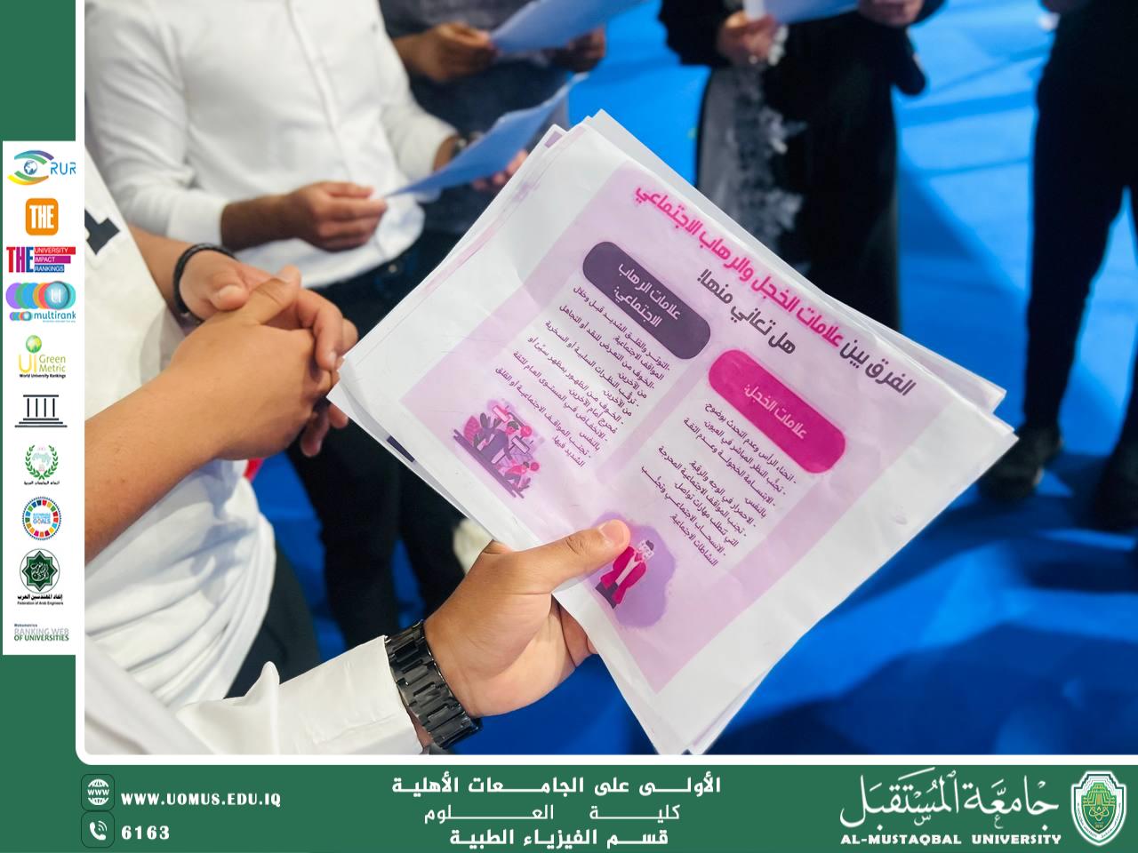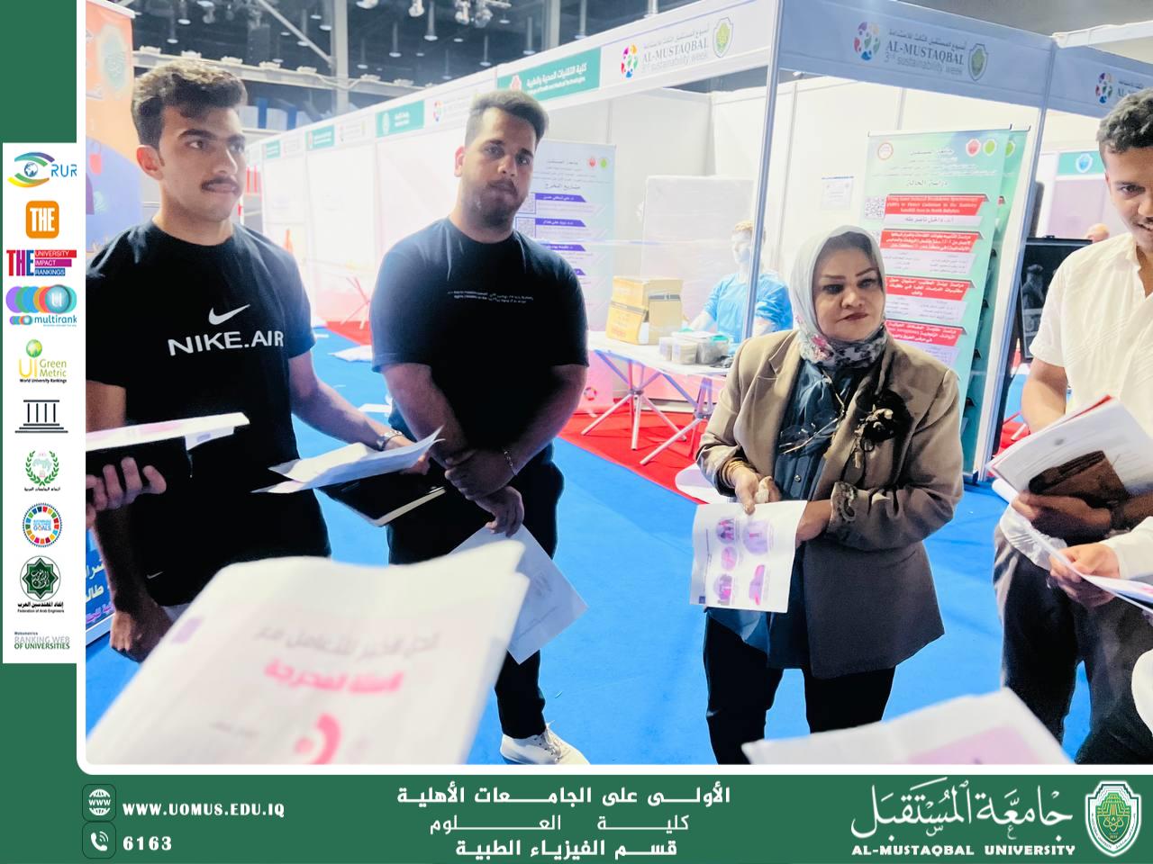 وذلك بإشراف الأستاذة أفراح حسين جهاد، وبمشاركة الطالب عباس دايخ غازي، داخل بوث قسم الفيزياء الطبية المقام في بناية مشاريع الاستدامة.