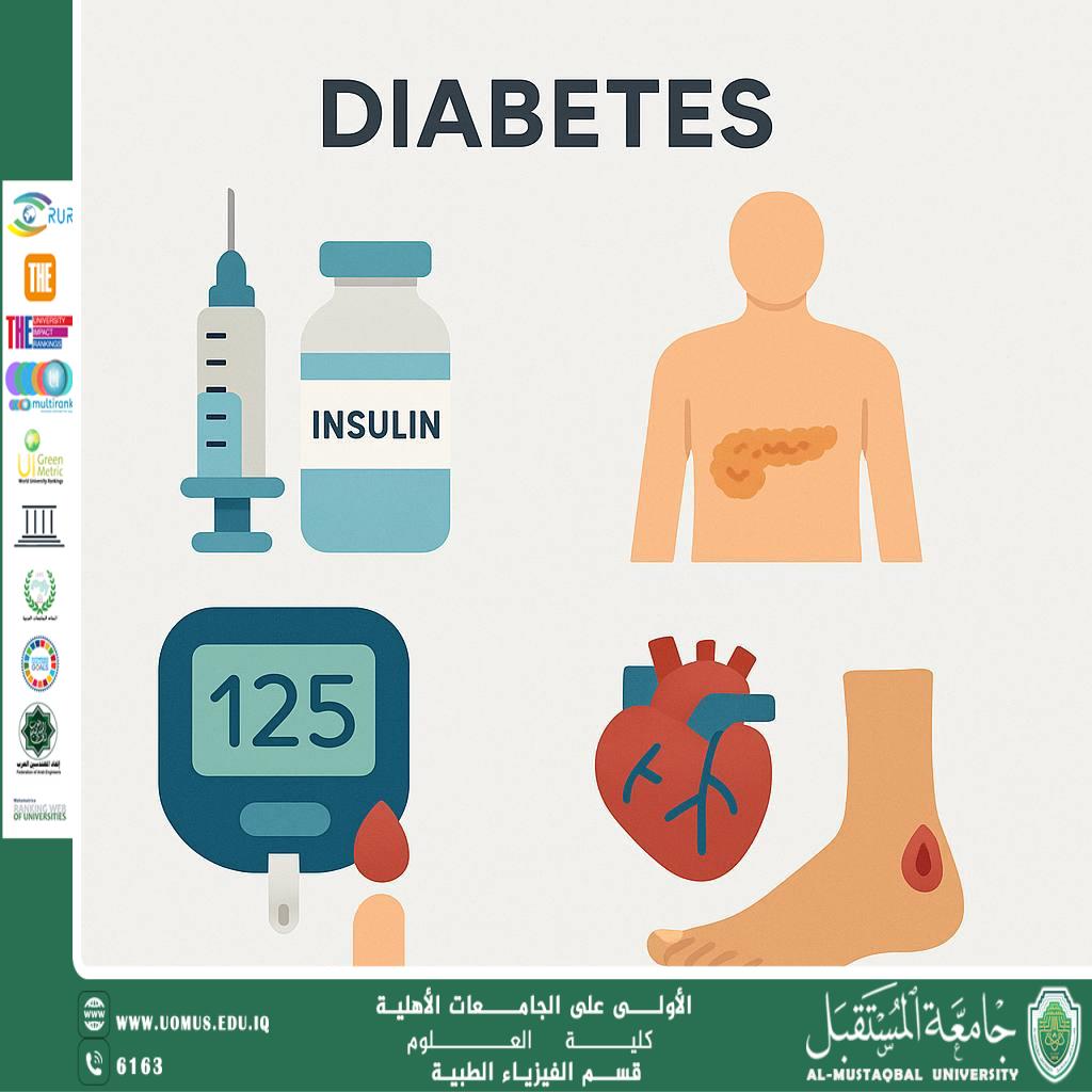 يُعد مرض السكري (Diabetes Mellitus) من أكثر الأمراض المزمنة شيوعاً في العالم. يتميز بارتفاع مستويات السكر (الجلوكوز) في الدم نتيجة خلل في إنتاج الأنسولين أو عدم استجابة الجسم له بشكل فعال. وقد يؤدي السكري، إذا لم يُعالج بشكل صحيح، إلى مضاعفات خطيرة تشمل القلب، الكلى، الأعصاب، والعينين.