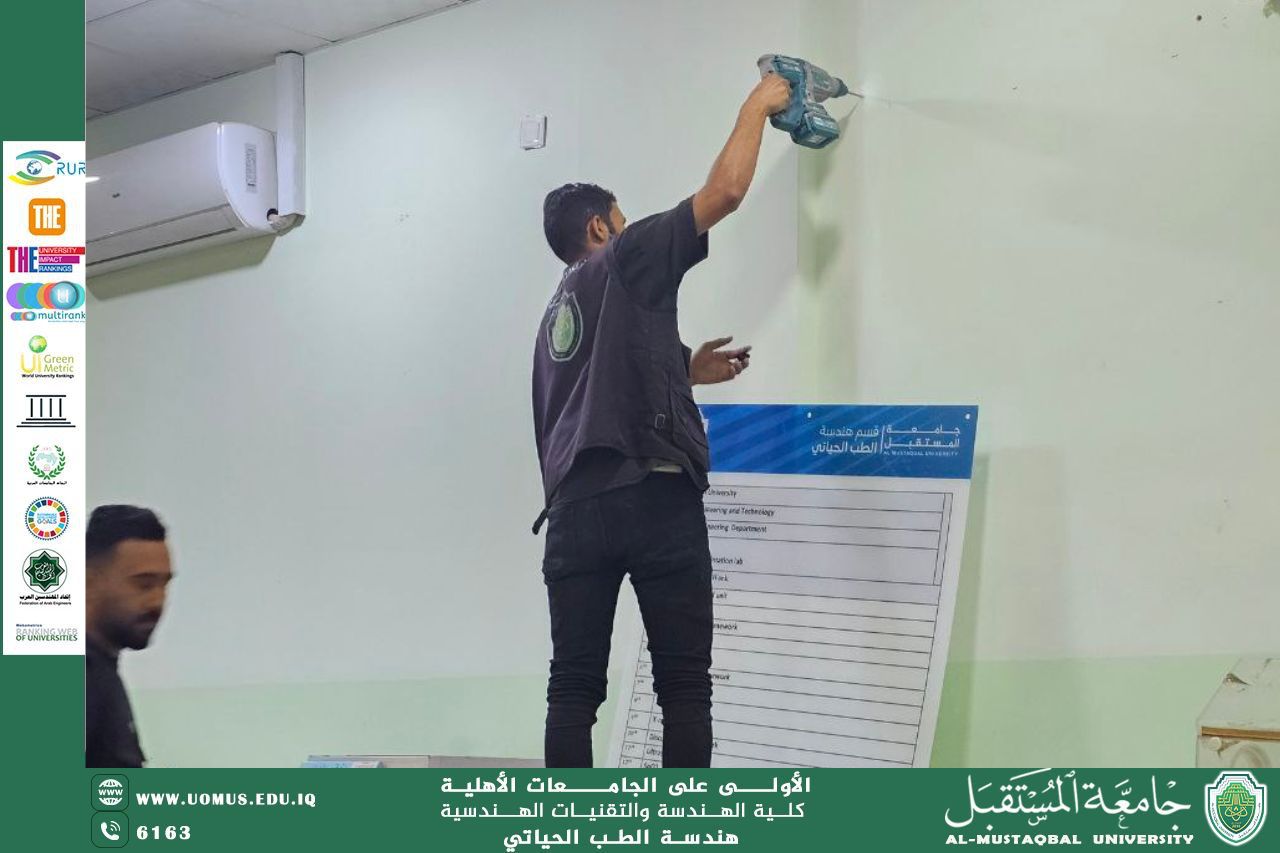 في إطار الاستعدادات المتواصلة لضمان بيئة تعليمية مثالية للطلبة، قامت الملاكات الهندسية والفنية في كلية الهندسة بجامعة المستقبل بأعمال صيانة وتجهيز شاملة لمختبرات قسم هندسة الطب الحياتي.