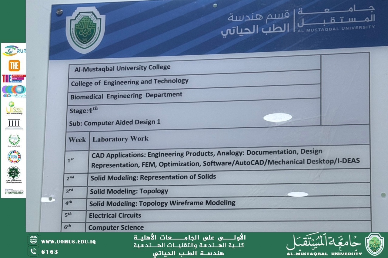 في إطار التزام قسم هندسة الطب الحياتي بتوفير بيئة تعليمية متكاملة ومنظمة، تم الانتهاء من تجهيز مختبر الحاسبات في الكلية بلوحات تعريفية حديثة وشاملة.