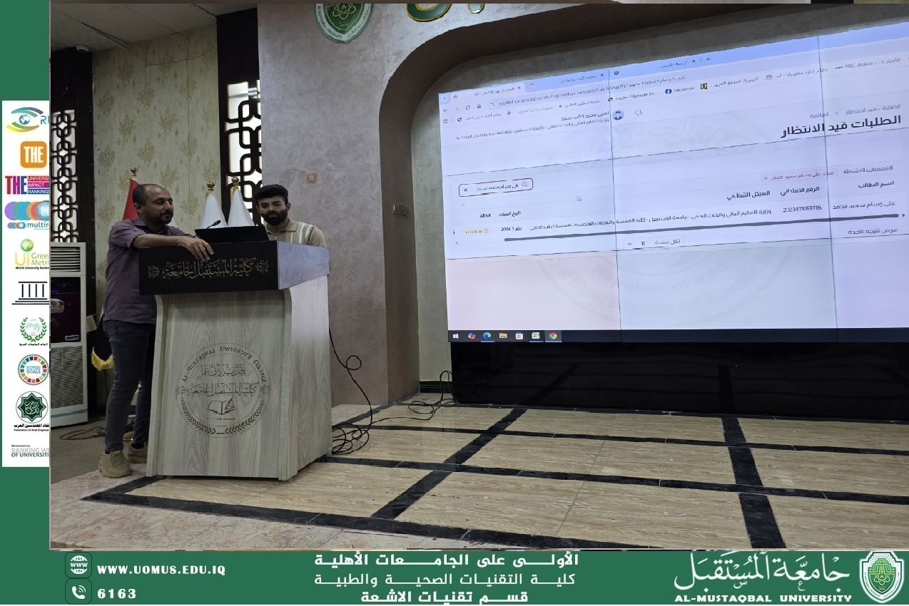 شارك الأستاذ حسن فائز عبدالحسين، مسجل تطبيق HEPIQ في قسم تقنيات الأشعة، في الورشة الخاصة التي أقامتها شعبة التسجيل في كلية التقنيات الصحية والطبية – جامعة المستقبل، حول آخر التحديثات والمستجدات المتعلقة بالتطبيق.
