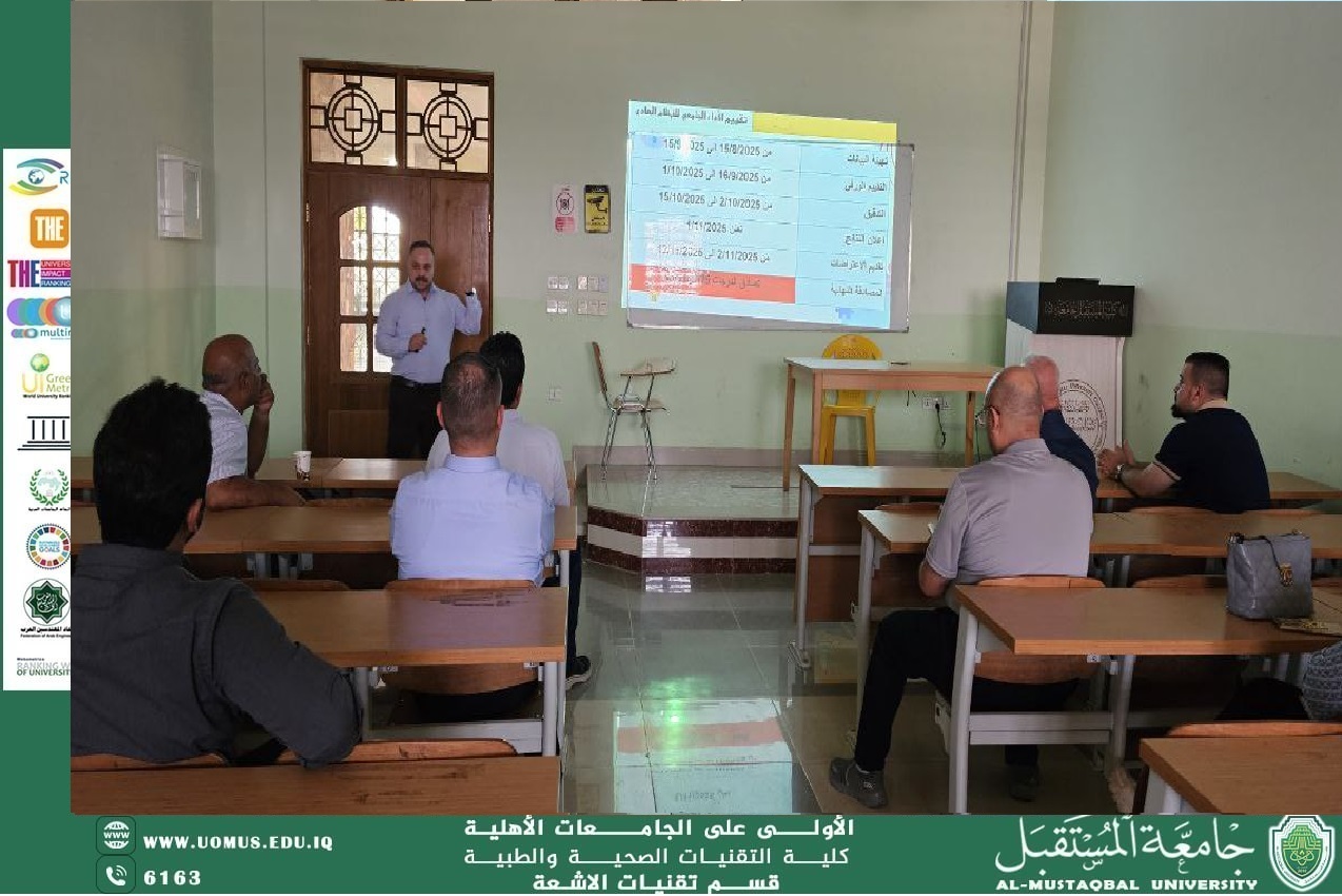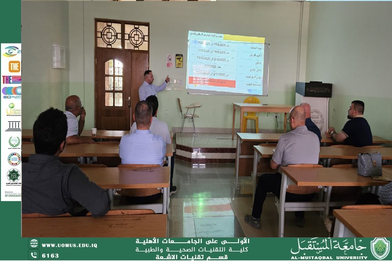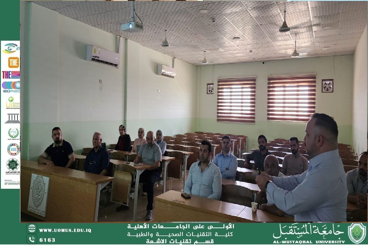 أقام قسم تقنيات الأشعة في كلية التقنيات الصحية والطبية – جامعة المستقبل، ورشة عمل تخصصية ألقاها الدكتور أحمد نجم عبيد، تناولت موضوع معايير الاعتماد البرامجي.