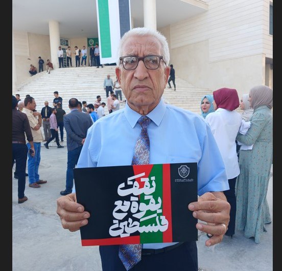 تأكيداً على الموقف الدائم المساند للشعب الفلسطيني الذي يتعرض للعدوان الإسرائيلي في قطاع غزة وبمشاركة رئيس الجامعة والسادة عمداء الكليات ورؤساء الاقسام والكوادر التدريسية والطلبة،