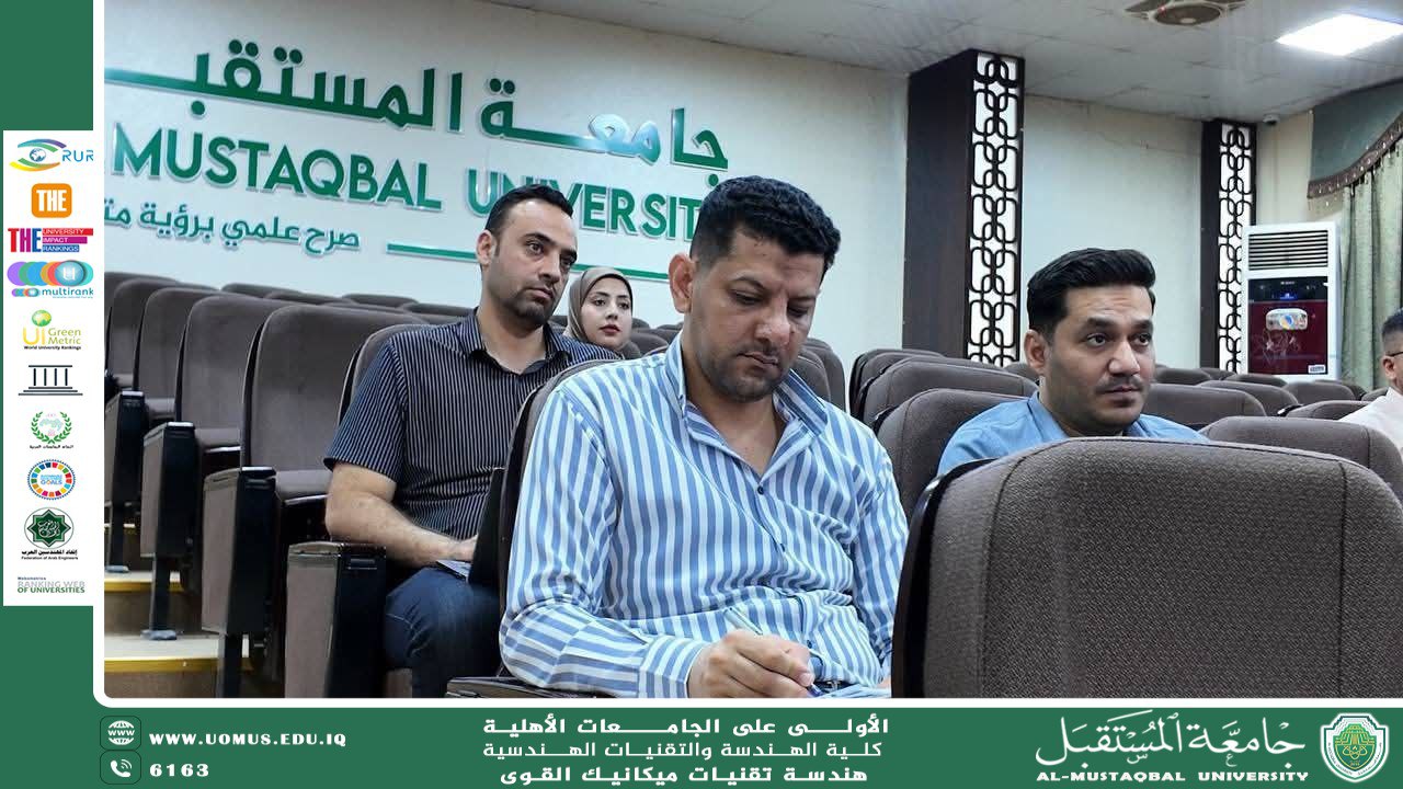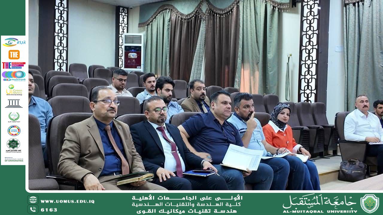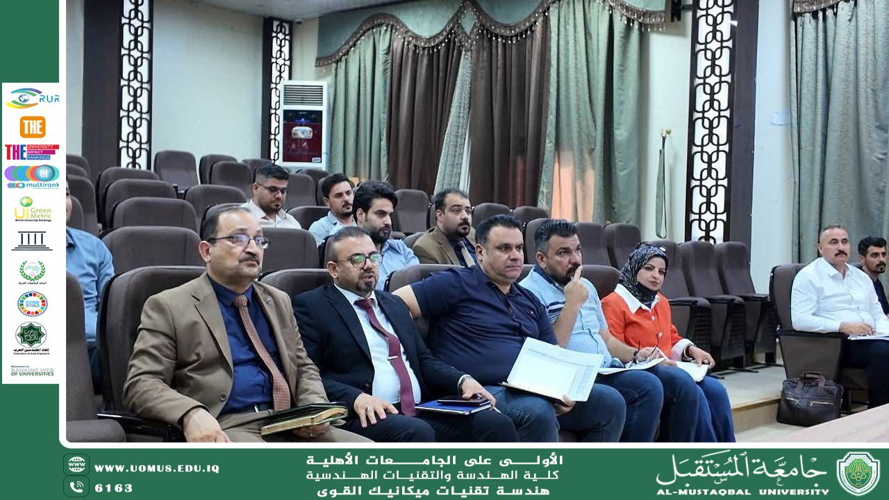 حيث ترأس الاجتماع الأستاذ المساعد الدكتور أزهر محسن عبد عميد كلية الهندسة والتقنيات الهندسية و المعاون الإداري الأستاذ المساعد الدكتور امين كتاب و بحضور رئيس قسم هندسة تقنيات ميكانيك القوى الاستاذ الدكتور قصي رشيد عبد الامير.
