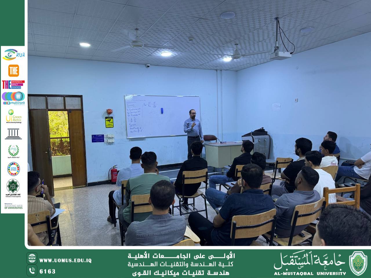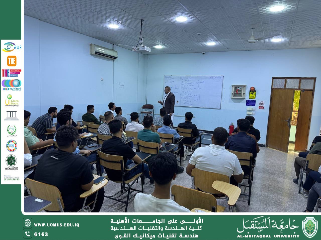 يتم متابعة تقديم المحاضرات العلمية لقسم هندسة تقنيات ميكانيك القوى وذلك على أيدي نخبة من أساتذة القسم الاكفاء لمختلف المواد الدراسية لضمان الاستفادة القصوى لأبنائنا الطلبة.