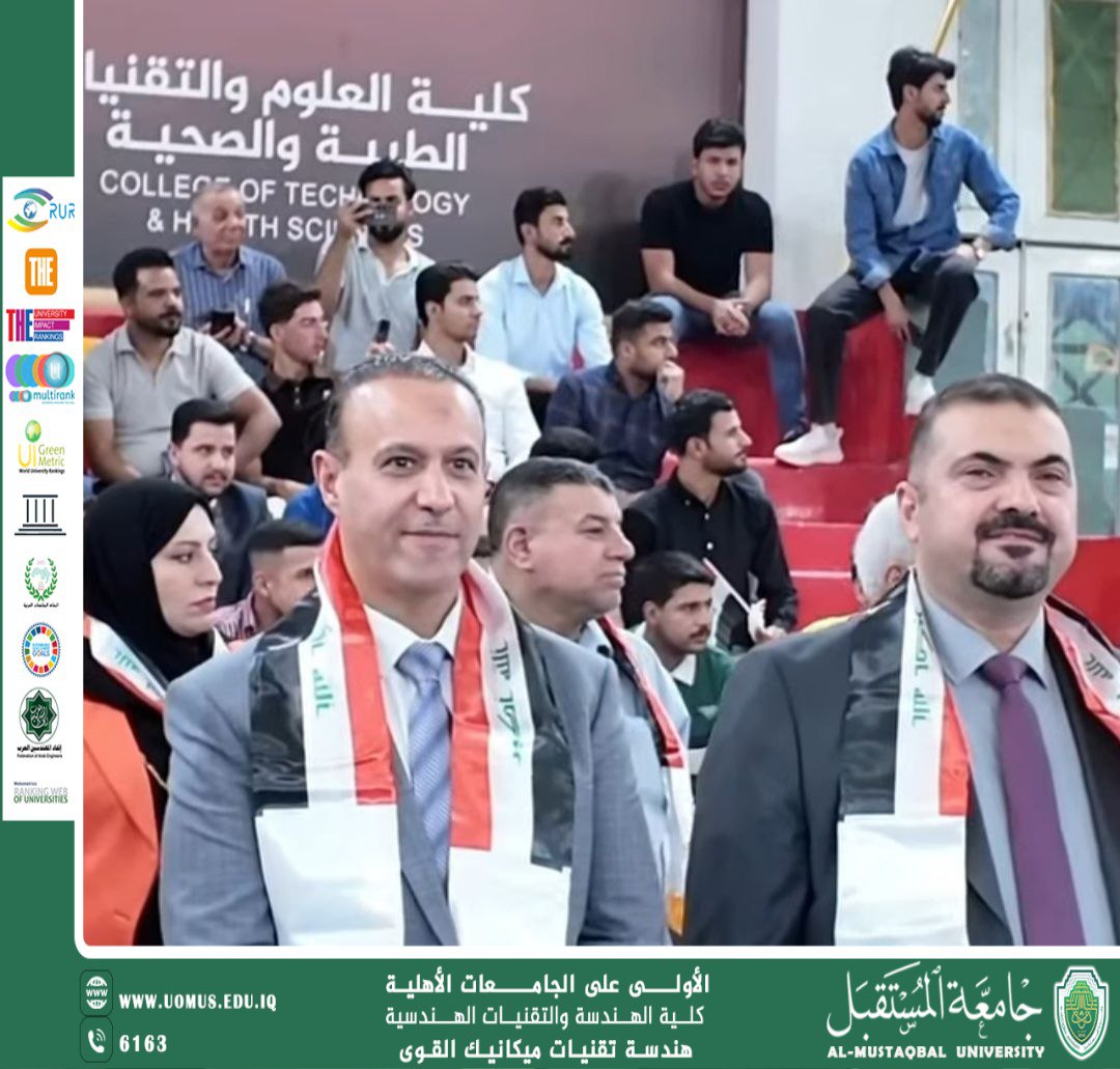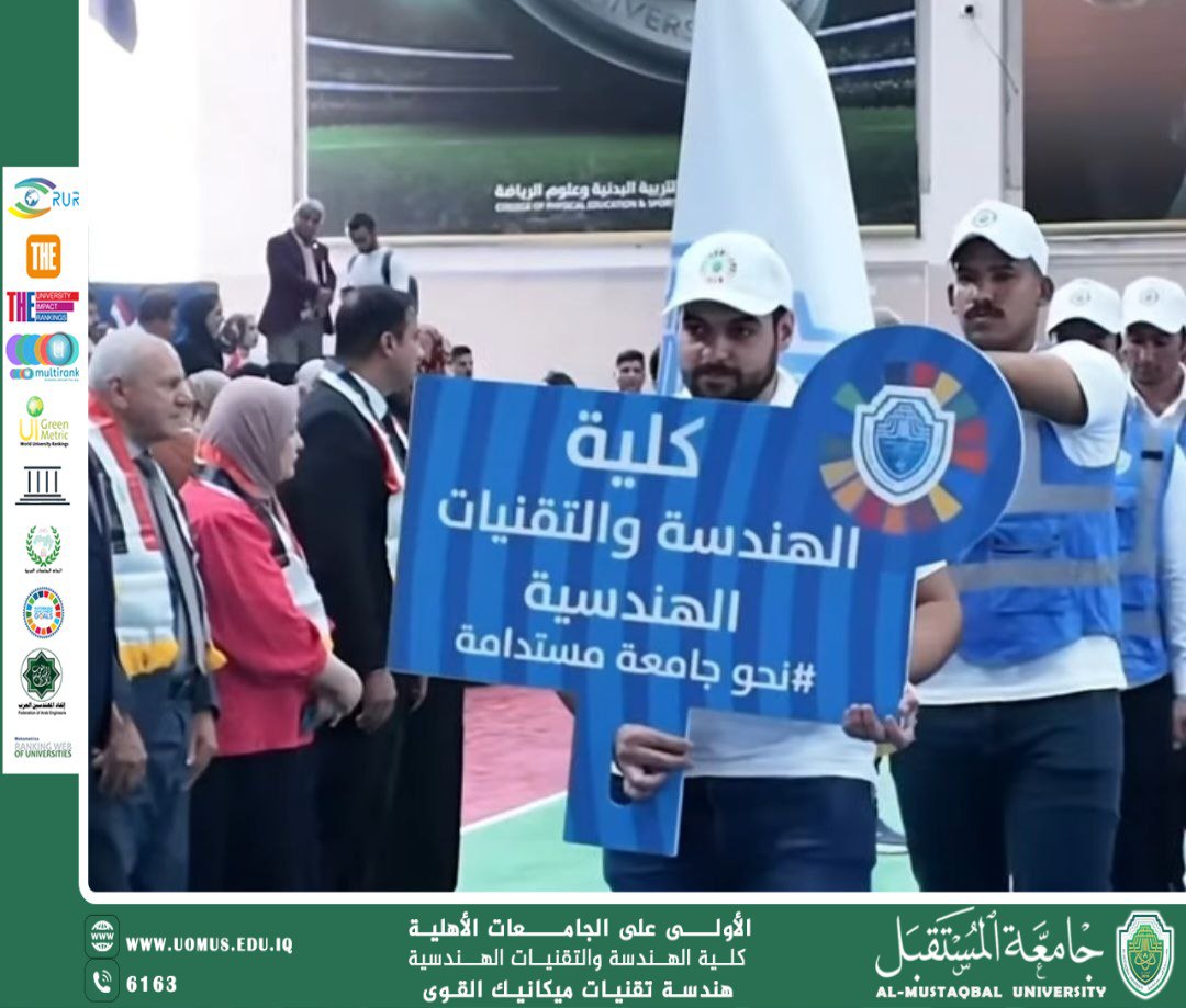 حيث كرم السيد رئيس جامعة المستقبل أ.د حسن شاكر مجدي رئيس قسم هندسة تقنيات ميكانيك القوى الاستاذ الدكتور قصي رشيد عبد الامير بمناسبة مشاركة قسم هندسة تقنيات ميكانيك القوى في تحقيق هذه الإنجازات الرائعة ورفع اسم جامعة المستقبل عاليا.