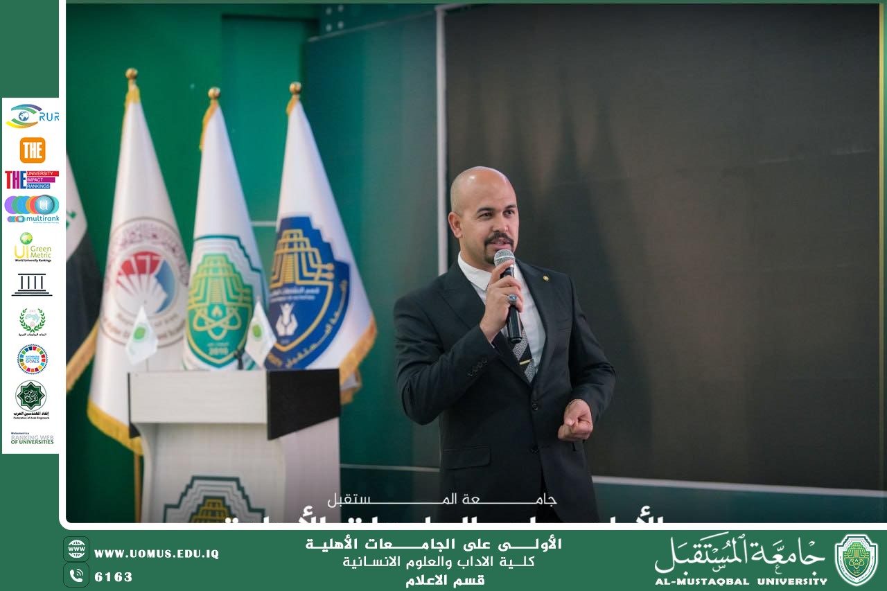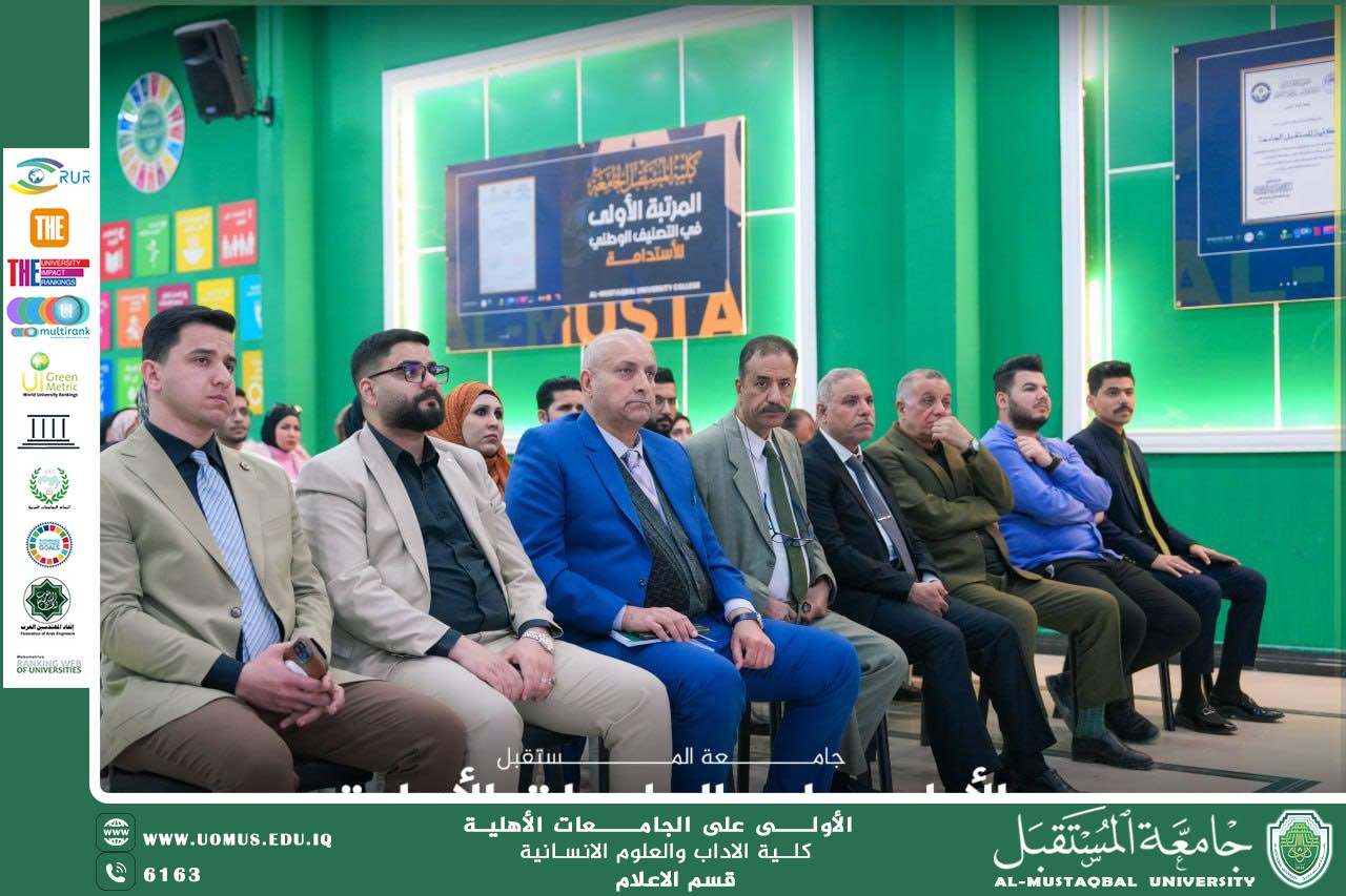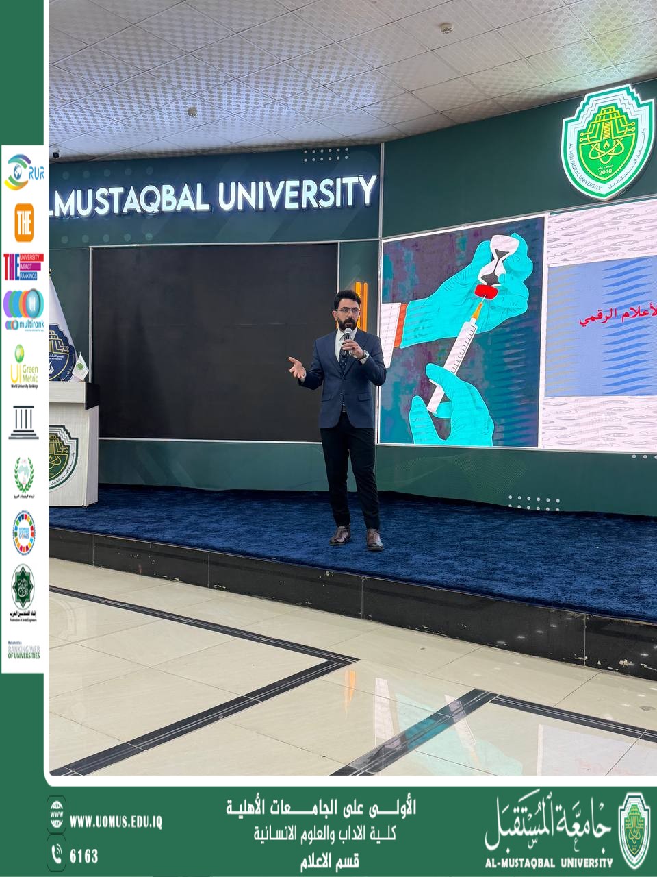 نظّمت جامعة المستقبل، برعاية السيد رئيس الجامعة الأستاذ الدكتور حسن شاكر مجدي، وبالتعاون بين كلية التمريض وكلية الآداب والعلوم الإنسانية، ورشة علمية بعنوان "الأطر الإعلامية القانونية... شراكة نحو حماية الكادر الصحي"، وذلك تحقيقًا للهدف الثالث والسادس عشر من أهداف التنمية المستدامة.