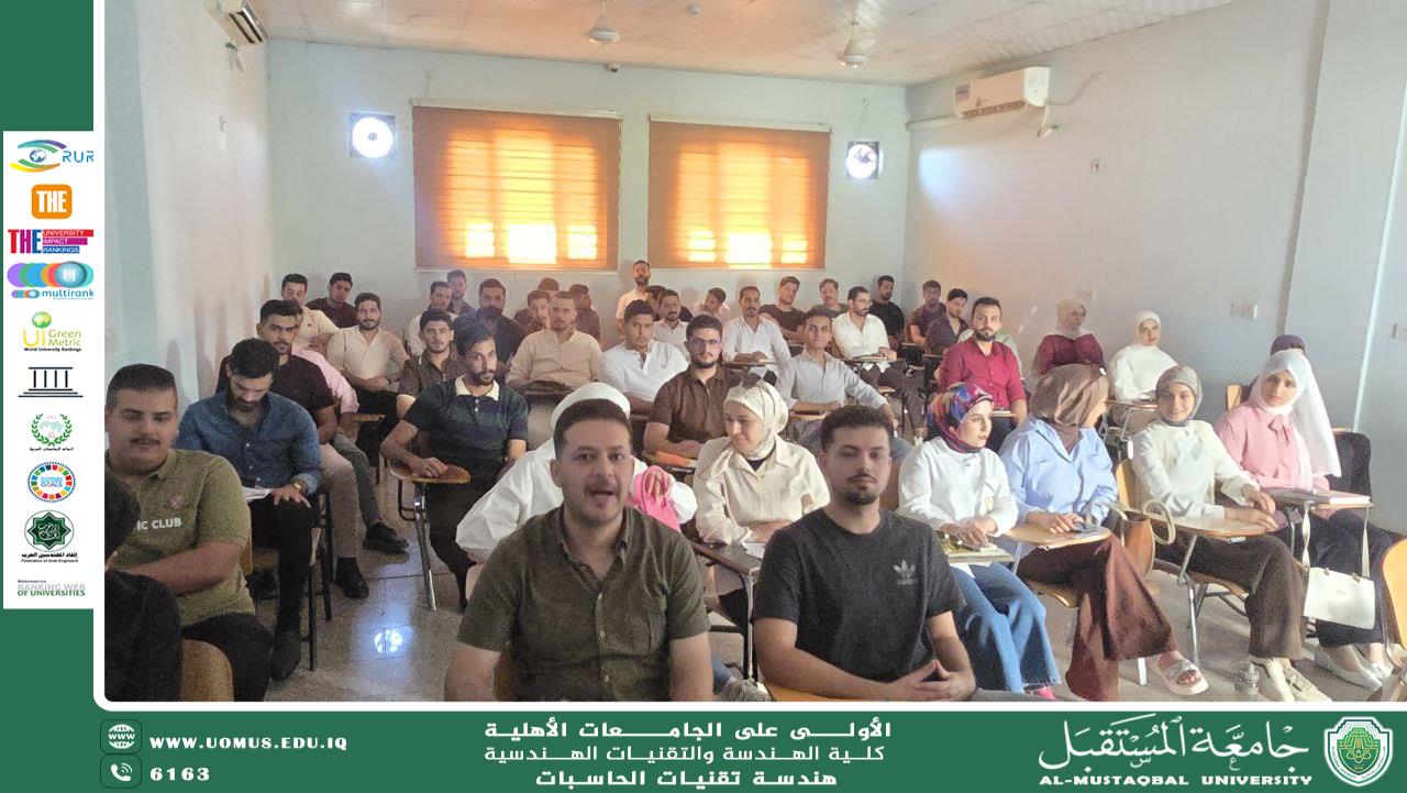 يواصل قسم هندسة تقنيات الحاسوب في جامعة المستقبل تقديم المحاضرات النظرية لمادة الاتصالات الرقمية لطلبة المرحلة الرابعة