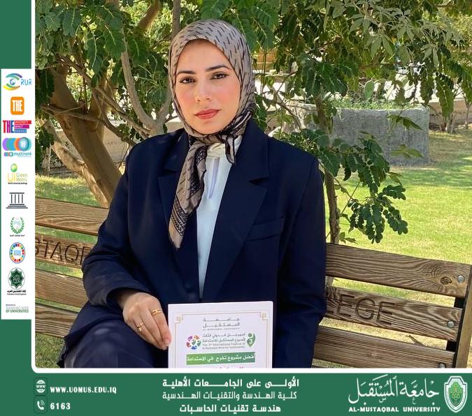 كرّم الأستاذ الدكتور حسن شاكر مجدي، رئيس جامعة المستقبل التدريسية م.م زينب كاظم تقديرًا لحصولها على المركز الأول في مشروع التخرج الأفضل في مجال الاستدامة، وذلك ضمن فعاليات الأسبوع الوطني العراقي للاستدامة.