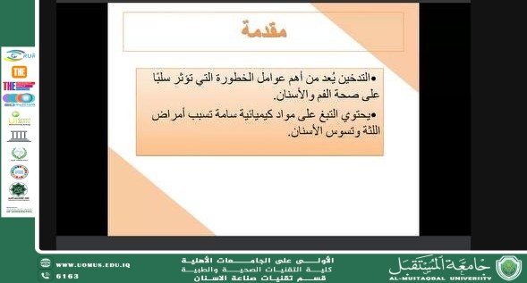 ورشة علمية بعنوان (( تأثير التدخين على صحة الفم )) تاريخ الخبر: 21/09/2025 | المشاهدات: 63