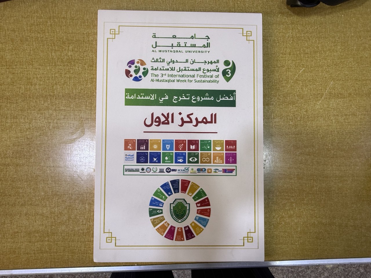 ضمن فعاليات معسكر الاستدامة واحتفالية اليوم الوطني العراقي، تم تكريم التدريسية م.م سالي سيلان حسين من قسم هندسة تقنيات البناء والإنشاءات في كلية الهندسة والتقنيات الهندسية، بعد حصولها على جائزة أفضل مشروع تخرج في مجال الاستدامة.