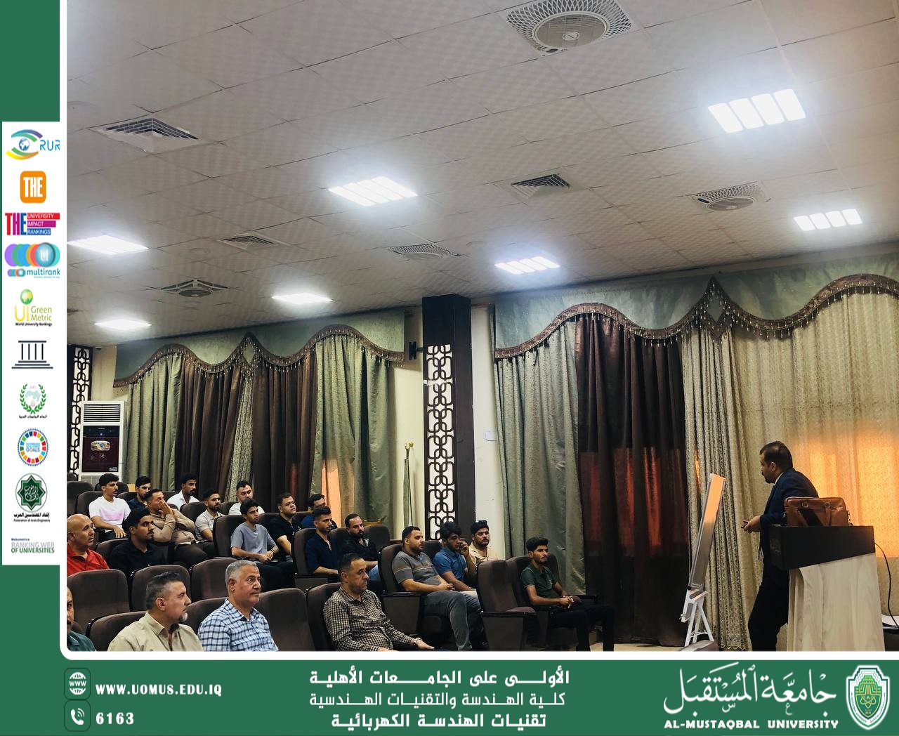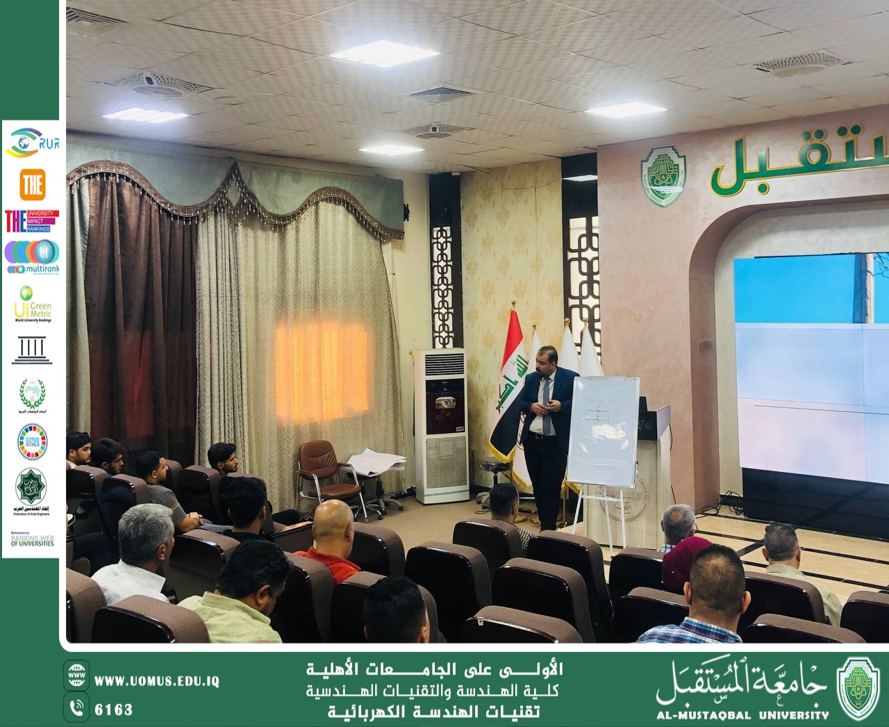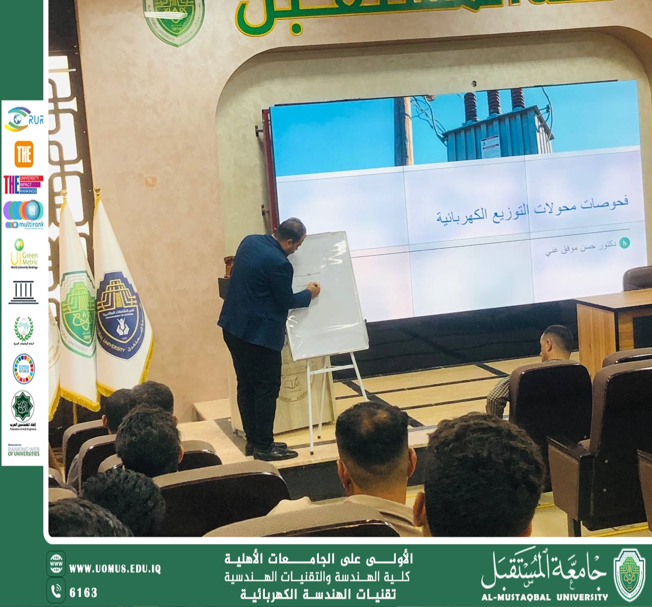 نظم قسم تقنيات الهندسة الكهربائية دورة تدريبية تخصصية بعنوان "المحولات الكهربائية – المفاهيم والتطبيقات"، ألقاها الدكتور حسن موفق غني، رئيس القسم، وذلك في قاعة المؤتمرات بالبناية الهندسية.
