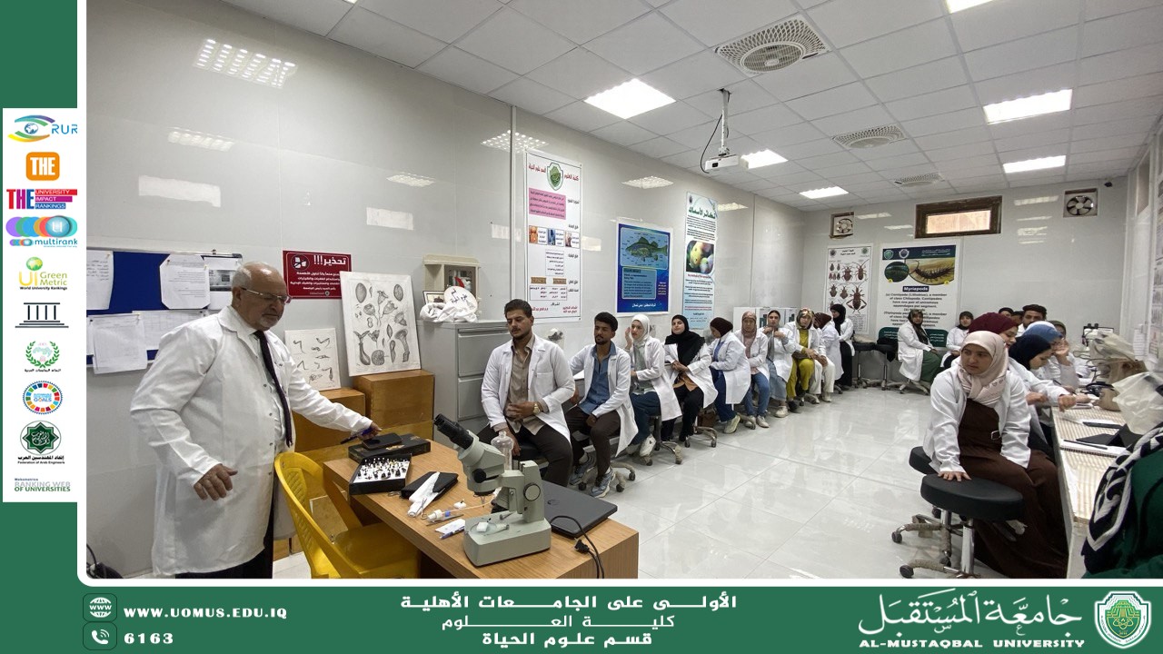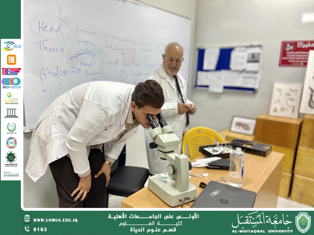 تُقام هذه المحاضرات بإشراف الأستاذ الدكتور علي شعلان معيلف، حيث يتاح للطلبة خلالها رؤية العينات الحشرية الحقيقية عبر المجهر، والتعامل المباشر مع نماذج من الحشرات المتنوعة، بهدف ترسيخ المفاهيم النظرية وتعزيز القدرة على التعرّف العملي على الأنواع المختلفة.