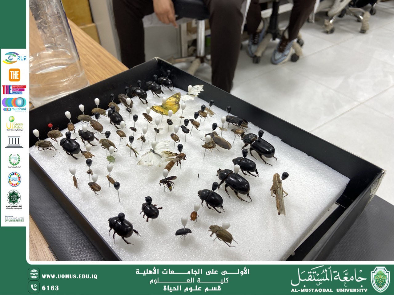 ضمن المنهاج العملي لمادة علم الحشرات في قسم علوم الحياة / المرحلة الثانية، يتم تقديم محاضرات تطبيقية تهدف إلى تعريف الطلبة بأهم خصائص الحشرات وأنواعها وتصنيفها، مع التركيز على الجوانب الشكلية والتشريحية لهذه الكائنات.