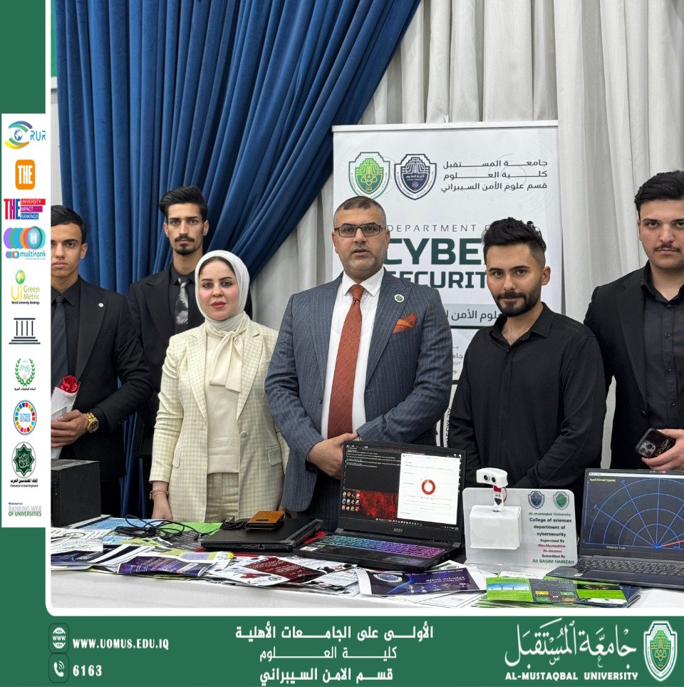 نظمت كلية العلوم اليوم الإثنين الموافق 6 تشرين الأول 2025 في جامعة المستقبل حفلًا لتكريم الطلبة الأوائل في قسم الامن السبراني ، بحضور السيد رئيس الجامعة ( ا.د حسن شاكر مجدي) المحترم، والسيد عميد كلية العلوم (ا.م.د فرات حمزة السلطاني) المحترم، والسيد رئيس قسم الامن السبراني (أ.م.د علي كاظم الغرابي )، والكادر التدريسي