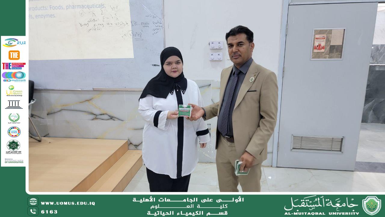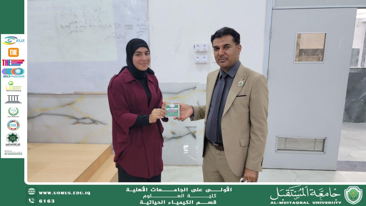 في إطار التحضيرات المتواصلة لمعسكر شباب الاستدامة الذي سيقام في منتجع بابل السياحي يومي 17 و18 من شهر تشرين الأول، قام رئيس قسم الكيمياء الحياتية في كلية العلوم بجامعة المستقبل الأستاذ الدكتور ناصر عبد الحسن ناصر بتسليم بطاقات الدعوة إلى طلبة المرحلة الثالثة المشاركين في هذا الحدث المميز.