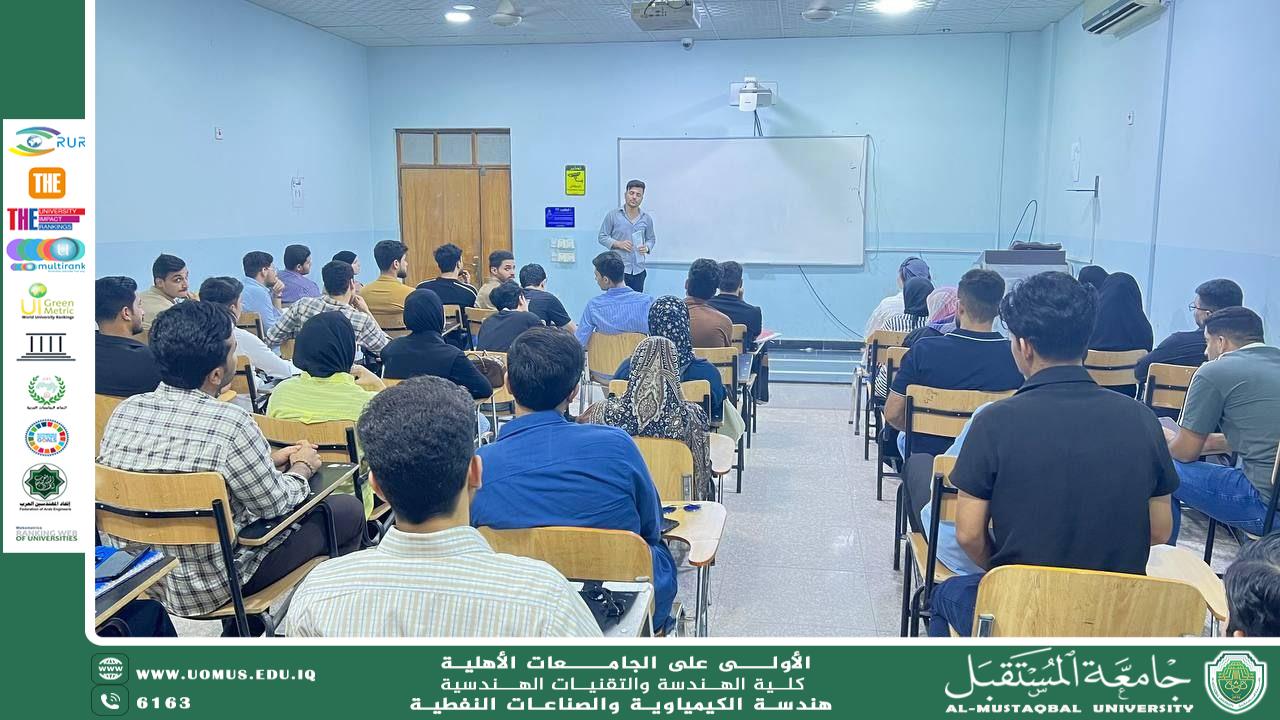يواصل قسم الهندسة الكيمياوية والصناعات النفطية في جامعة المستقبل تنفيذ محاضراته العملية والنظرية، وسط حضور متميز وتفاعل إيجابي من الطلبة، بما يعكس حرصهم على تحقيق الاستفادة العلمية الكاملة.