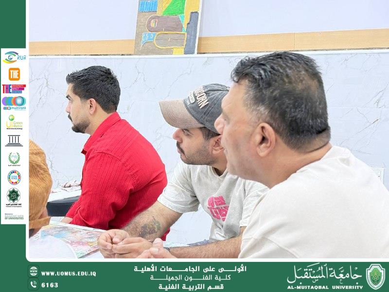 استقبل قسم التربية الفنية في كلية الفنون الجميلة – جامعة المستقبل، العام الدراسي الجديد بانتظام المحاضرات وانطلاق الأنشطة الأكاديمية لطلبة المراحل كافة، وسط أجواء من الحماس والتفاعل بين الطلبة والتدريسيين.