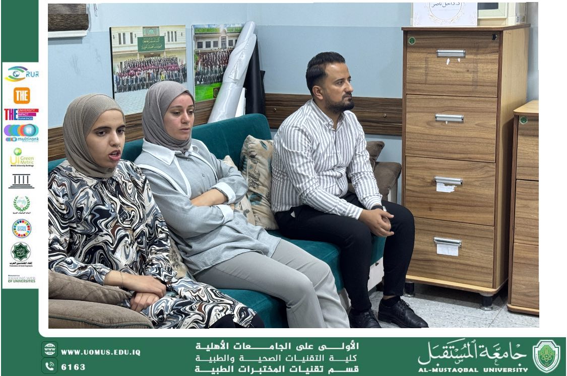 عقد قسم تقنيات المختبرات الطبية في كلية التقنيات الصحية والطبية – جامعة المستقبل، صباح اليوم، اجتماعًا موسعًا للجنة تسجيل الطلبة في نظام التسجيل الإلكتروني (SIS)، برئاسة الأستاذ الدكتور داخل ناصر طه رئيس القسم، وبحضور أعضاء اللجنة.