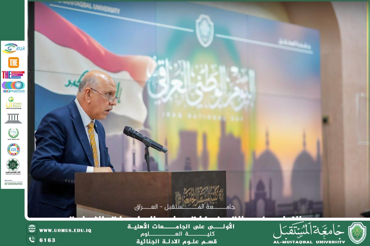احتفلت جامعة المستقبل صباح اليوم باليوم الوطني العراقي، في أجواء من الاعتزاز والانتماء، وبحضور عدد من السادة المساعدين والعمداء والأساتذة والمنتسبين والطلبة .
