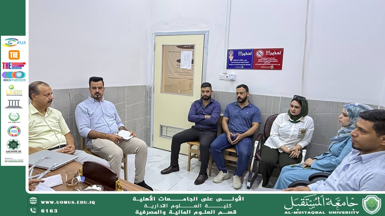 عقد قسم العلوم المالية والمصرفية يوم الأربعاء الموافق 1/تشرين الاول 2025 اجتماعاً موسعاً استعداداً لانطلاق معسكر الاستدامة، وذلك بحضور رئيس القسم الأستاذ الدكتور نصيف جاسم محمد علي، ومقرر القسم م.د زين العابدين عبود، وأعضاء الهيئة التدريسية في القسم.