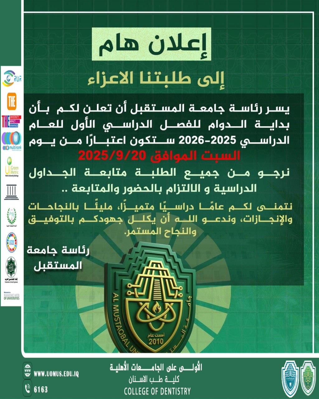 اعلان بداية الدوام الرسمي للفصل الدراسي الأول للعام الدراسي 2025-2026