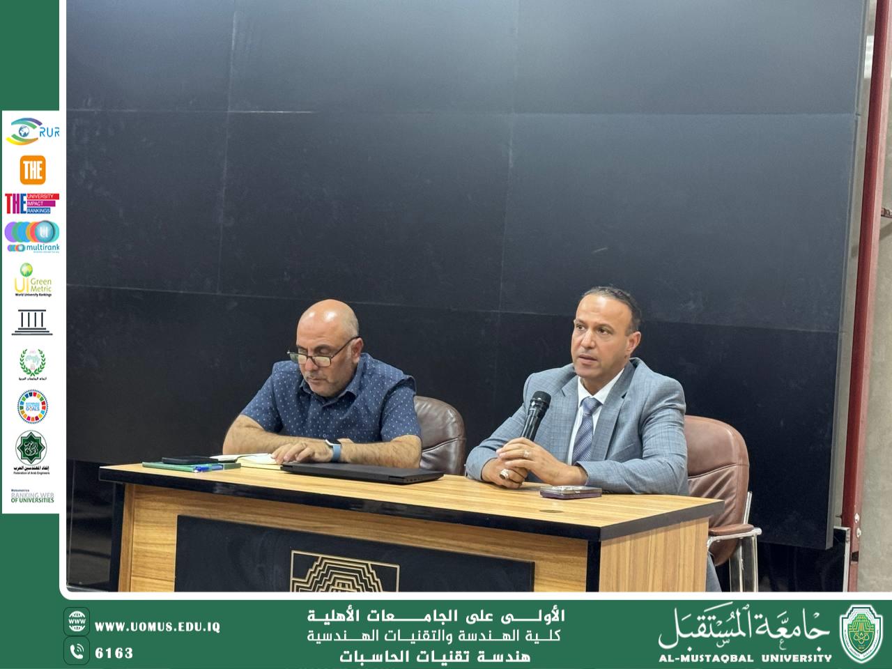 عقد الأستاذ المساعد الدكتور أزهر محسن عبد عميد كلية التقنيات الهندسية في جامعة المستقبل اجتماعًا موس...